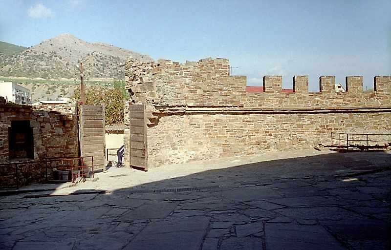 Предмет охраны объекта культурного наследия федерального значения «Комплекс сооружений Судакской крепости, XIV – XV века»: «Предмостное укрепление, 1385-1414 годы», расположенного по адресу: Республика Крым, г.Судак, ул.Генуэзская крепость, д.1.Нематериальные особенности объекта культурного наследияДатировкаВ 1469 году ворота перенесены в северную часть (современное положение), о чём свидетельствует закладная геральдическая плита, хранящаяся в экспозиции музея.Исторически ценное функциональное назначениеФортификационное сооружение.Историко-художественная ценностьСооружение входит в состав ансамбля Судакской крепости, является образцом западноевропейской средневековой фортификационной архитектуры, выполненным из местного строительного материала и по технологии, характерной для Крыма.Градостроительная ценностьСооружение входит в состав градоформирующего объекта – ансамбля Судакской крепости.Материальные особенности объекта культурного наследияГрадостроительные характеристикиМестоположение зданияБарбакан расположен в северной части крепости, восточная часть стены барбакана стыкуется с куртиной XIV в 4,5м к востоку от башни «Бернардо Франко Пагана», а западная – по центру северного фасада башни «Коррадо Чикало». Охраняется на 1469 год: местоположение здания.Габариты и силуэтОбщая длина стены составляет около 71,5 м, ширина по линии привратных башен и ворот – 23 м. Является неотъемлемым элементом, формирующим силуэтную линию передовой оборонительной линии крепости.Охраняется на 1469 г. с учётом реставрации 1980-х годов: - габариты и силуэт (возможно изменение существующих высотных отметок завершения, связанное с проведением работ по сохранению ОКН на основании утверждённой научно-проектной документации).Архитектурные и конструктивные характеристикиОбъемно-пространственная композиция зданияСооружение подковообразное в плане, выполнено в виде крепостной стены с мерлонами. Воротный проём в южной части сооружения был выполнен в виде стрельчатой арки. Внутри барбакана, в восточной и западной частях находятся приямки с каменными лестницами для обслуживания дренажной системы. В месте примыкания стены к башне «Бернардо Франко Пагана» сохранились каменные элементы источника, при реставрации, оформленные арочным порталом. Перед воротами барбакана сохранились археологические остатки устоев моста через оборонительный ров.Охраняется на 1469 г. с учётом реставрации 1980-х годов: - характер объёмно-пространственного решения;- расположение воротного проёма и источника;- месторасположение и объёмно пространственные характеристики двух приямков с лестницами;- месторасположение, геометрические параметры, материал археологических остатков устоев моста перед воротами.Композиция и архитектурно-художественное оформление фасадовФасады плоские, стена завершалась брустверной стенкой с мерлонами, существующие мерлоны реставрационные. В стене с восточной и западной сторон находятся по две щелевидные вертикальные бойницы, в плане имеющие трапециевидную конфигурацию. Под бойницами расположены сквозные дренажные отверстия. Источник в стене при реставрации оформлен арочным каменным порталом.Охраняется на 1469 г. с учётом реставрации 1980-х годов: - композиция и характер архитектурно-художественного оформления фасадов.Виды отд