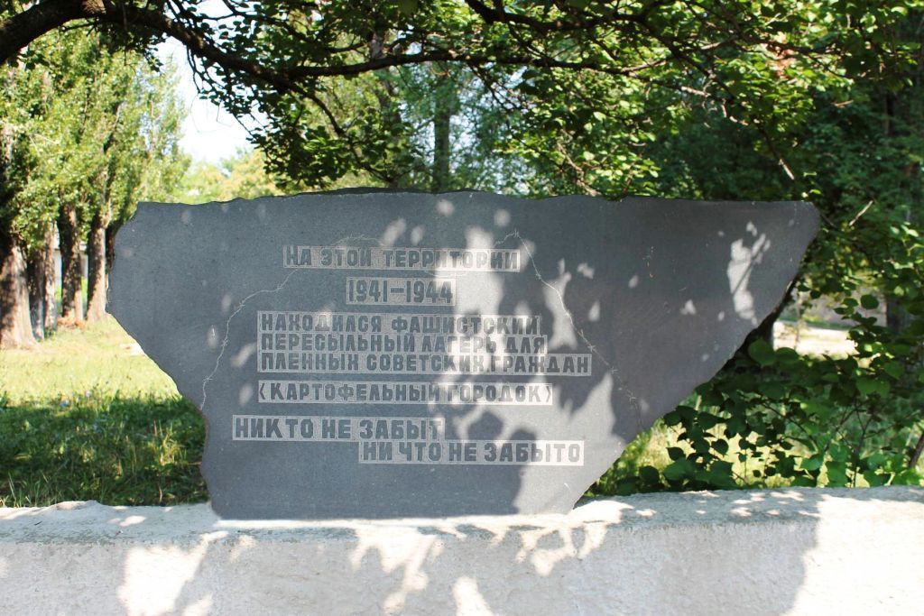Памятный знак на месте фашистского концлагеря для военнопленных «Картофельный городок»