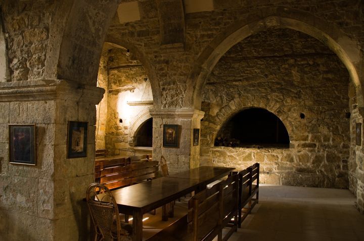 Трапезная, XIV в.Нематериальные особенности объекта культурного наследия.Датировка:- трапезная XIV в., по уточненным данным – начало XV в.Историко-художественная ценность:- просторное (двухзальное) и примечательное с точки зрения архитектуры (трехнефное сводчатое) монастырское здание светского предназначения, позволяющее составить представление о бытовой стороне жизни монахов-армян, об их возможностях обрабатывать, приготавливать и хранить пищу, об условиях приема пищи.Редкость:- редчайший образец уцелевшего трапезного сооружения крымских армян, возведенный в позднее средневековье.Историческая функция:- монастырское сооружение светского характера, предназначенное для обработки, приготовления и хранения пищи. Местоположение:- трапезная монастыря Сурб-Хач отделена от гавита парадным двориком – атриумом и занимает западное крыло ансамбляСилуэт, габариты:- крупное, прямоугольное здание двухзальной трапезной расположено на крутом склоне – значительно ниже остальных сооружений. Из-за этого со стороны атриума оно выступает одноярусным строением, а снаружи, или с запада – двухъярусным, если не считать надстройку, появившуюся позднее. С севера три мощных контрфорса поддерживают ее северо-западный, наиболее высокий наружный угол.Объемно-пространственная композиция:- трапезная представляет собой крупный нерасчлененный массив, лишенный убранства. Делится она на два, почти квадратных зала, которые сообщаются между собой проходом, открытым в восточном углу разделяющей их стены. Залы возведены по одинаковой конструкции и напоминают строение гавита (притвора). Каждый из них в плане имеет прямоугольную конфигурацию и двумя колоннами в центре интерьера делится на три нефа восток- запад ориентации. Причем центральные нефы выше и шире боковых. Подпружные арки (восток-запад), перекинутые на колонны и пилястры, поддерживают сводчатые нефов, по центру усиленные нервюрами. Подпружные арки и своды в северном зале имеют стрельчатый контур, в южном – полуциркульный.Каждый из залов освещается тремя широкими окнами на западе. Южный зал имеет еще одно окно в восточной стене. Арочное окно в восточной стене северного зала имеет низкое расположение. Каждый из залов имеет отдельный вход из атриума, открытый в восточной массивной стене. – Охраняются форма и габариты здания в плане; высотные отметки до уровня пола надстройки.– Охраняются местоположение, строение, габариты, тип материала колонн, пилястров и сводов.– Охраняются местоположение, размеры и конфигурация дверных и оконных проемов.Крыша:- конструкция и строение крыши трапезной неизвестны. Наиболее ранние изображения свидетельствуют об окруженной парапетом ровной террасе над трапезной с несколькими локальными помещениями на ней. К середине XIХ века, эти помещения были демонтированы, и над трапезной появился верхний этаж, который впоследствии многократно перестраивался и обновлялся. Нынешняя надстройка возведена в 2008 году и имеет маленький балкон на западной стороне. Она взята под четырехскатную черепичную крышу. – Охраняются местоположение, габариты, форма. Композиция и архитектурно-художественное оформление фасадов:- восточный фасад – гладкий нерасчлененный одноэтажный (не считая надстройки) массив. Оживлен двумя дверными и двумя оконными проемами, обрамленными рамами и