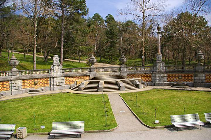 Предмет охраны объекта культурного наследия федерального значения «Комплекс сооружений дворца Александра III, 1880-1902 годы»: «Полукруглая подпорная стена с арками, вазами, фонарными колоннами и пристенными фонтанами», расположенного по адресу: Республика Крым, городской округ Ялта, пгт.Массандра, ул.Симферопольское шоссе, д.13.Градостроительные характеристики.Местоположение: объект расположен в северо-восточной части современной территории дворцово-паркового ансамбля в Верхней Массандре, в самой верхней точке парадной части парка; маркирует восточную границу парадного курдонёра у восточного фасада дворца.Охраняется: - историческое местоположение памятника и его композиционная роль в ансамбле и окружающей ландшафтно-градостроительной ситуации.Секторы и направления видовых раскрытий, визуальные связи памятника.Охраняются: - сохранившиеся исторические видовые/визуальные раскрытия на объект культурного наследия; визуальные связи памятника на начало ХХ века.Архитектурно-композиционные характеристики и элементы.Объемно-пространственная структура; исторические габариты.Объемно-пространственная структура; исторические габариты на начало XX века: стенообразное сооружение полукруглой (дугообразной) в плане конфигурации с концевыми (северным и южным) крыльями, дополненное: с западной стороны в центральной части - полукруглой лестницей, первоначально ведшей из парадного курдонёра перед дворцом к дорожке в лесопарковую часть усадьбы (в настоящее время проход закрыт бетонной балюстрадой, на месте которой ранее была металлическая оградка с калиткой), по сторонам от лестницы - пристенными фонтанами на полукруглой части стены (по три с каждой стороны) и на концевых крыльях (по одному фонтану на каждом крыле); с завершением в виде балюстрады, на которой расположены формирующие силуэт сооружения вазы, арки (с утраченными скульптурами) и фонарные колонны, являющиеся также (арки и колонны) высотными акцентами сооружения. Исторические габариты сооружения: максимальная длина по продольной оси стены ~ 72 м; габариты элементов в плане: чаши пристенных фонтанов: 1.27х2.12х0.4 м, вазы: диаметр 1.5 м, высота 2.5 м, фонарные колонны: диаметр 0.5 м, высота 7.5 м, арки: 3.0х0.7х7.5 (h) м.Охраняются: - историческая конфигурация плана и объёмно композиционное решение;- исторические габариты.Композиция и архитектурно-художественное оформление.Композиция и оформление на начало XX века, в том числе: месторасположение и форма лестницы, балюстрады, фонтанов, фонарных колонн и арок; месторасположение утраченной скульптуры; общие характеристики декоративного оформления сооружения на начало XX века. Западная сторона (фасад):представляет собой симметричную вогнутую композицию, в центральной части которой устроена полукруглая лестница; симметрично от лестницы расположены пристенные фонтаны; вертикальное членение стены выполнено в виде рустованных пилястр, поверхность между пилястрами декорирована орнаментом, выложенным из трехцветной метлахской плитки; верхняя часть стены выполнена в виде балюстрады, на пилонах которой установлены шесть больших каменных ваз и четыре фонарные колонны; правое и левое крылья подпорной стены оформляют пристенные фонтаны, над которыми располагаются две полуциркульные арки с утраченными скульптурами; на южном конце стены истори