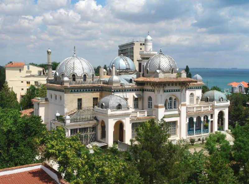 Нематериальные особенности объекта культурного наследияДатировка: дата создания объекта – 1909-1914 гг.Авторство: по сложившейся традиции местного краеведения автором считается петербургский зодчий Оскар-Генрих Эмильевич Вегенер (1851-1919).Историко-художественная ценность: памятник архитектуры эпохи «модерна» в свое время принадлежал к романтическому «ретроспективистскому» направлению современной архитектуры. В общем плане здания и его объемно-пространственном решении использована смесь известных и традиционных приемов, по отдельности характерных для разных исторических эпох. Особенностью данного памятника является гармоничное сочетание различных архитектурных стилей в оформлении фасадов и интерьеров.Материальные особенности объекта культурного наследияМестоположение здания: участок, относящийся к зданию, расположен на углу пересечения проспекта Айвазовского и улицы Ульянова. Восточный фасад обращен в сторону проспекта Айвазовского, идущего параллельно береговой линии. Бывший некогда главным южный фасад выходит в сторону двора и обращен на соседнюю территорию (исторически также принадлежавшую парку Дачи Стамболи), ныне занимаемую гостиницей. Второй по значимости северный фасад заглублен относительно «красной линии» улицы Ульянова и отделен от нее парковой территорией. Западный фасад выходит вглубь двора.Территория объекта:Охраняется участок, относящийся к памятнику и входивший в состав исторической территории Дачи Стамболи.Ограда и ворота исторической территории дачи, принципиальное устройство рельефа и организации территории; террасы на границе современного участка, лестницы, ограда и ворота террасы, беседка, грот;охраняются расположение, форма, конструкция, материалы.Силуэт, габариты: объем здания, в основе которого лежит план сложной конфигурации. Сложной формы крыша здания: основной объем перекрыт четырехскатной вальмовой крышей, отдельные объемы увенчаны куполами полусферической формы. Основной доминантой силуэта является башня со смотровой площадкой, вспомогательными – трубы и декоративные башенки. Габариты 37,85х26,20х13,0(h) м (высота здания от низа цоколя до верха карниза)/ 23,8(h) м (высота от низа цоколя до верхней точки купола башни). Охраняются силуэт и габариты.Объемно-пространственная композиция: сложной конфигурации план с выступающими крыльцами, террасами, балконами, вспомогательными помещениями. Высотные отметки по венчающим карнизам.Крыша: крыша здания сложной конфигурации. Основной объем перекрыт четырехскатной вальмовой крышей со слуховыми окнами, отдельные объемы увенчаны куполами полусферической формы, стропильные конструкции куполов. Охраняются высотные отметки по коньку крыши основного объема, отметки куполов; трубы и декоративные башенки, конструкция крыш, угол наклона скатов, деревянные подкосы, материал, конфигурация, характер кровельного покрытия (металлическое покрытие «в картину», «в шашку», черепица, стеклянное покрытие зимнего сада).Композиция и архитектурно-художественное оформление фасадовОхраняется форма, размер, композиция, местоположение фасадов, декоративное обрамление оконных и дверных проёмов. Охраняется оформление северо-восточной входной группы мраморными резными плитами, мраморными колоннами. Металлический козырек северо-восточного входа.Хара