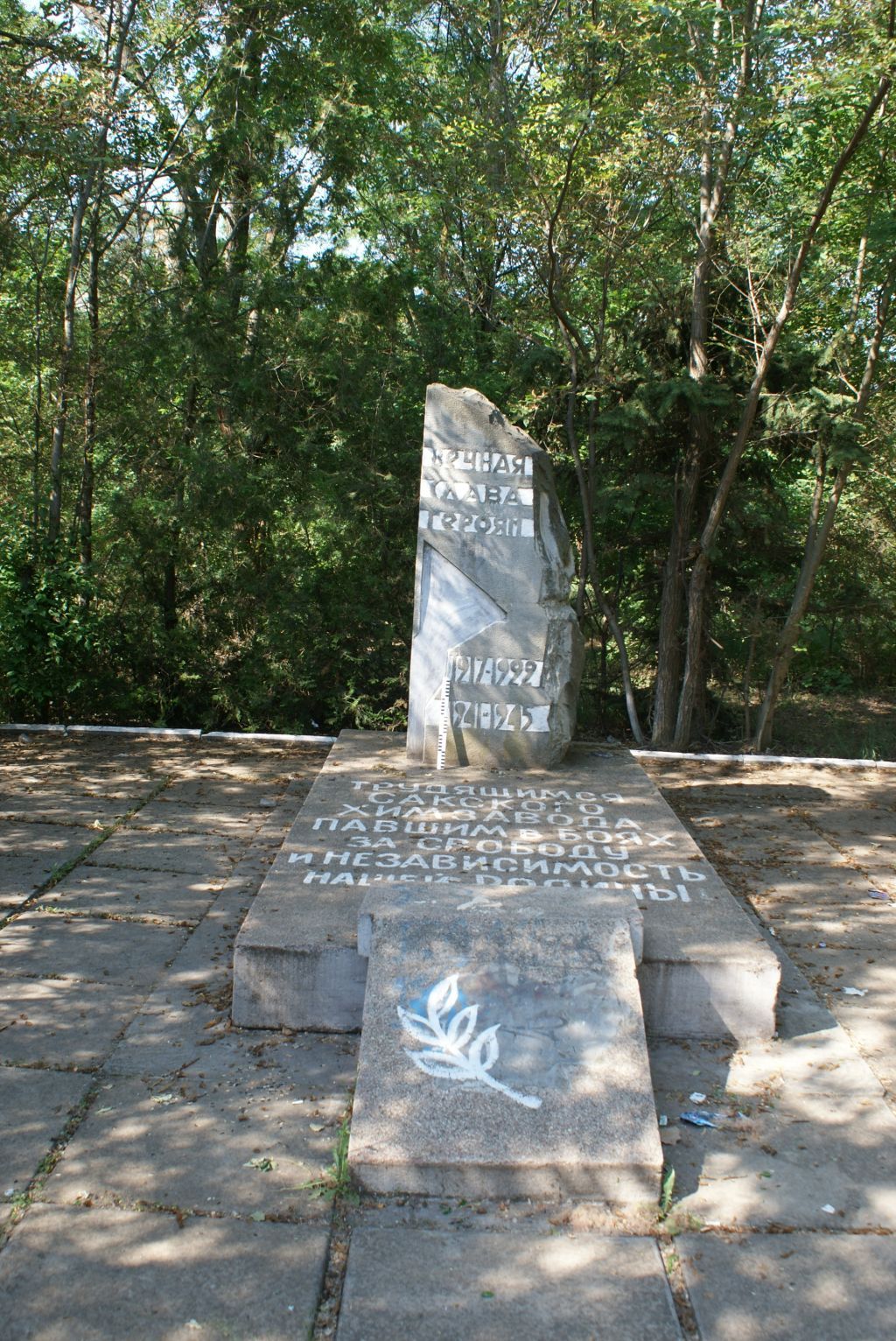 Предмет охраны объекта культурного наследия регионального значения «Памятный знак в честь рабочих химзавода, погибших в годы Гражданской и Великой Отечественной войн», 1918-1920 годы, 1941-1945 годы, 1967 год, расположенного по адресу: Республика Крым, г. Саки, ул. Ленина.Мемориальное сооружениеСтела и подушка на общем постаменте.Охраняется: местоположение, композиция памятника.Стела, подушкаВертикальная стела (габаритные размеры: 1,0 х 0,8 х 2,2(h) м) из диорита имеет форму каменной глыбы с отшлифованной лицевой гранью; установлена на прямоугольном в плане постаменте из бетона (габаритные размеры: 4,12 х 1,8 х 0,3(h) м).На лицевой грани стелы высечена и окрашена оранжевой краской мемориальная надпись: «ВЕЧНАЯ СЛАВА ГЕРОЯМ» (в верхней части) и «1917-1922», «1941-1945» (в нижней части). Фрагмент стелы облицован красным гранитом.К северной стороне постамента примыкает бетонная подушка (габаритные размеры: 0,8 х 1,3 х 0,45(h) м) с наклонной гранью, на которой укреплена мемориальная табличка с надписью: «Трудящимся химзавода, павшим в боях за свободу и независимость нашей Родины».Охраняется:- стела: местоположение, конфигурация, габариты, форма, тип материала; - мемориальная надпись: местоположение (на лицевой грани стелы), содержание, характер исполнения, колористическое решение – после проведения комплексных научных исследований;- подушка, постамент: местоположение, конфигурация, габариты, форма, тип материала;- мемориальная табличка: местоположение (на лицевой грани подушки), габариты, тип материала; содержание мемориальной надписи.БлагоустройствоВокруг памятника устроена площадка прямоугольной формы в плане (габаритные размеры: 17,3 х 8 м), выложенная бетонными тротуарными плитами серого цвета. От ул. Ленина к площадке ведет дорожка, шириной 3 м, с аналогичным покрытием. По обе стороны от дорожки размещены зеленые насаждения.Охраняется:местоположение, конфигурация, габариты благоустроенной территории.Предмет охраны может уточняться после проведения комплексных научных исследований.