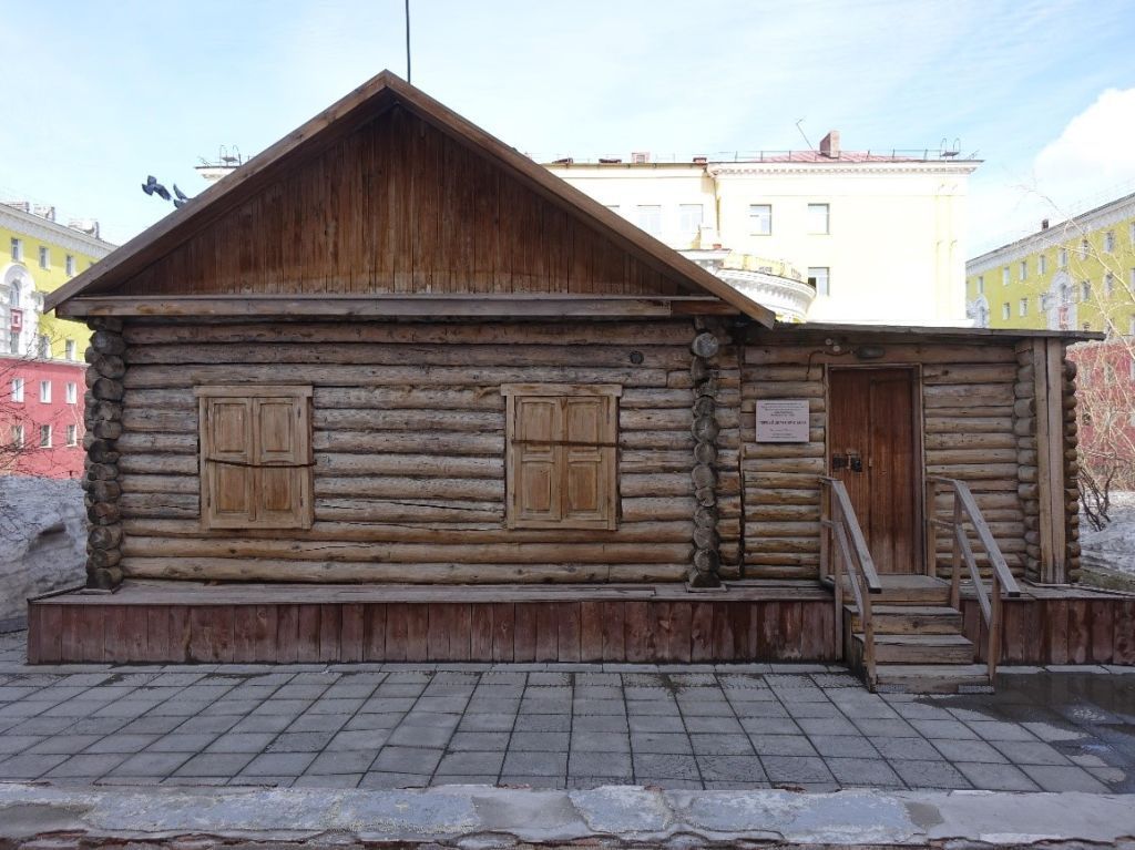 1. Градостроительные характеристики1.1. Местоположение объекта в системе городской застройкиОбъект расположен в историческом центре г. Норильска, на Ленинском проспекте, в глубине квартала, ограниченного ул. Павлова, ул. Богдана Хмельницкого, Ленинским проспектом и ул. Пушкина (за зданием музея г. Норильска).1.2. Композиционная значимостьВажный элемент исторической застройки города, архитектурный акцент внутри квартальной застройки. 1.3. Габариты и силуэтГабариты и высотные отметки здания на дату строительства (1921 г.).1.4. Секторы и направления видовых раскрытий, визуальные связи памятникаВидовые раскрытия объекта со стороны внутриквартальных проездов, из сквера в центральной части квартала. 2. Архитектурные и конструктивные характеристики2.1. Объемно-пространственная композиция на дату строительства (1921 г.)Одноэтажное, прямоугольное в плане, здание на цоколе, с пристройкой прямоугольных в плане сеней в левой части юго-восточного фасада. 2.2. Конструкция крыши на дату строительства (1921 г.)Крыша основного объема двускатная (со скатами в сторону северо-запада и юго-востока). Крыша пристройки сеней с одним пологим скатом. Кровля тесовая по деревянным конструкциям.2.3. Композиция и архитектурно-художественное оформление фасадов на дату строительства (1921 г.)2.3.1. Северо-западный фасадКомпозиция фасадаФасад разделен перерубом на две части: в левой части симметрично расположены 2 оконных проема; в правой части, рядом с перерубом, – один оконный проем. Размер и форма (прямоугольные) проемов.2.3.2. Юго-восточный фасад Композиция фасадаФасад решен в одну ось, представленную прямоугольным оконным проемом, расположенным посередине стены основного объема дома.Размер и форма проема.2.3.3. Северо-восточный фасадКомпозиция фасадаСтена и треугольный торец крыши глухие (не имеют проемов). 2.3.4. Юго-западный фасадКомпозиция фасадаФасад основного объема дома симметричный, решен в 2 оконных оси, завершен глухим треугольным торцом крыши. В стене сеней расположен входной проем.Размер и форма (прямоугольные) проемов.2.4. Виды отделки фасадной поверхности на дату строительства (1921 г.)Открытое бревенчатое поле стен основного объема дома. Торцы крыши зашиты вертикально тесом.2.5. Заполнения дверных и оконных проемов на дату строительства (1921 г.)Габариты и местоположение проемов фасадов; характер расстекловки и материал (дерево) оконных заполнений. Все окна одного размера, имеют простые деревянные наличники, оборудованы двухстворчатыми деревянными ставнями.2.6. Конструктивные элементы на дату строительства (1921 г.)Дом-пятистенок. Стены сруба основного объема дома сложены из 12 венцов бревен. Перерубы стен не зашиты, углы рублены «в лапу».Перекрытия плоские деревянные по балкам.2.7. Пространственно-планировочная структура интерьеров на дату строительства (1921 г.)Планировочная структура дома сформирована разделением его внутреннего пространства внутренней стеной и перегородками на четыре помещения разного размера и коридор по всей ширине дома, расположенный в юго-западной части сруба, за внутренней поперечной стеной. В восточной части здания расположена кирпичная печь. 3. Историческая (мемориальная) ценностьПамятник истории, связанный с освоением Таймыра, зарождением и историей Норильского комбината – одного из крупнейших горнометаллургических комбинатов м