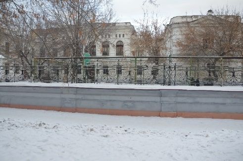 1. Местоположение, роль и градостроительные характеристики объекта Ограждение территории комплекса учительской семинарии сохранилось по двум сторонам участка: южное ограждение из кирпича с ажурными коваными решетками, выходящее на ул. Урицкого, западное ограждение – глухая бутовая кладка, отделяет территорию комплекса от дворового пространства соседнего здания.Условия зрительного восприятия:раскрытие памятника и восприятие с участка улицы Урицкого, ограниченного улицами Диктатуры Пролетариата и Кирова, а также с перекрестка улиц Урицкого и Кирова.2. Южное ограждение2.1 Архитектурные и конструктивные характеристикиОбъемно-пространственная композиция на 1901 г.:глухое кирпичное ограждение с юго-восточной стороны участка, фасадом выходит на северную сторону ул. Урицкого; состоит из 5 высоких секций восточной части и примыкающих к ним 10 западных секций с ажурным металлическим заполнением, с воротами и калитками на кирпичных столбах по центру;композиционно глухая часть ограды разбита столбами на пять прясел;цоколь выделен уступом;верхний профилированный штукатурный карниз состоит из трех полочек. Колористическое решение:кирпичная кладка ограждения оштукатурена и окрашена в белый цвет, окраска металлических решеток и ворот с калиткой – в черный цвет, металлическое покрытие цоколя окрашено в красно-коричневый цвет (в тон цвета кровли главного корпуса учительской семинарии).Инженерно-техническая:металлическая ковка с креплением элементов на клепки и хомуты.Фундамент:ленточный, бутовый на известково-песчаном растворе.Стены:кирпичная кладка на известково-песчаном растворе.Проемы:столбы ворот и калиток – высокие прямоугольные кирпичные столбы с полочкой нижнего пояса и профилированным верхним карнизом;металлические ворота и калитки – ажурные в верхней части и глухие в нижней части (являются поздним ценным наслоением).Декор кирпичного ограждения на 1900-1903 гг.:каждое прясло декорировано «лежачей» филенкой, опирающейся на профилированную тягу, раскрепованную по столбам, которая является венчающим карнизом другой части ограды, с металлической решеткой поверху;нижняя часть кирпичного штукатурного цоколя отбита полочкой;верхний профилированный штукатурный карниз состоит из полочек и выкружек;верх цоколя покрыт кровельным металлом;исторический рисунок металлических решеток в стиле модерн в виде крупных завитков, гнутых линий и пучков кованых стрелок;длинные металлические секции перемежаются с узкими вертикальными, стоящими по осям выступающих лопаток цоколя.2.2. Нематериальные ценностные характеристикиИсторическая функция: функция ограждения территории. Датировка: дата постройки 1901 год.Историко-художественная ценность: глухое кирпичное ограждение является неотъемлемой частью второй части ограждения с кованой решеткой; историко-художественная ценность объекта обусловлена ярко выраженными характеристиками кованой решетки в стиле модерн.Технологическая ценность: использование традиционных материалов – кирпич, металл, штукатурка на известковом растворе.Редкость: объект является ярким представителем стиля модерн для губернской архитектуры, редкий пример сохранившегося ограждения территории усадьбы при плотной застройке города.Авторство: проект городского архитектора и гражданского инженера А