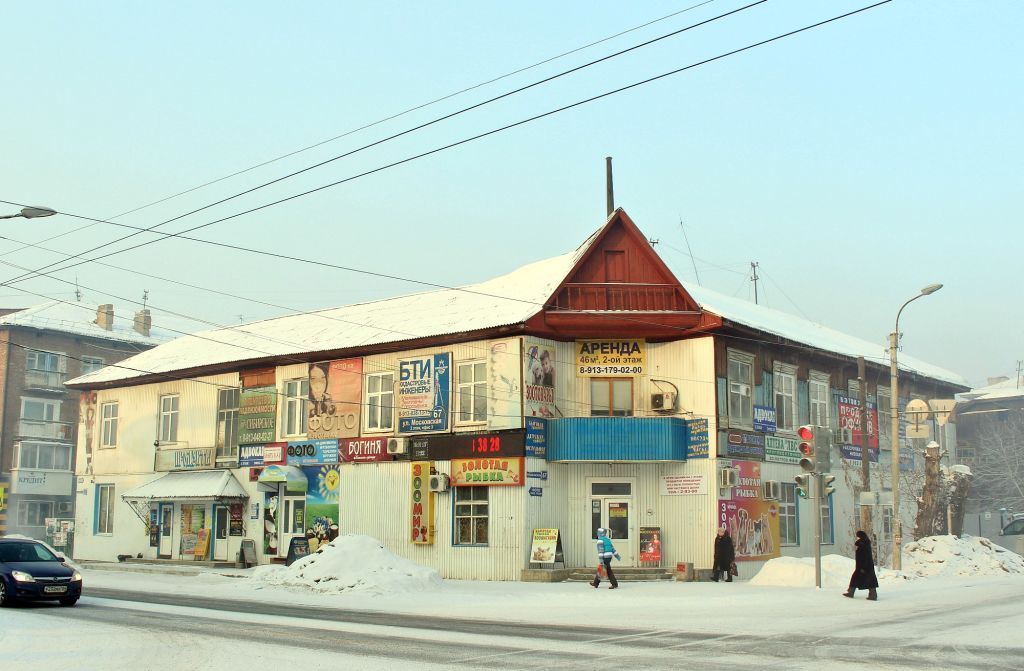 1. Градостроительные характеристики1.1. Местоположение зданияОбъект расположен в квартале исторического центра г. Канска, образованном ул. Московская, ул. Коростелева, ул. Урицкого и ул. Бородинская, занимает восточный угол квартала, образованный пересечением ул. Московская и ул. Коростелева.1.2. Композиционная значимостьФормирует перекресток ул. Московская и ул. Коростелева.1.3. Габариты и силуэтРазмеры здания в плане 25,45 х 21,1 м.1.4. Секторы и направления видовых раскрытий, визуальные связи памятникаОбъект раскрывается с участка ул. Московская, ограниченного ул. Бородинская и ул. Ленина, а также с участка ул. Коростелева, ограниченного ул. Урицкого и ул. Парижской Коммуны.2. Архитектурные и конструктивные характеристики2.1. Объемно-пространственная композиция на дату строительства (1942 г.)Крупное двухэтажное здание, состоящее из двух блоков: юго-восточного блока, прямоугольного в плане со срезанным восточным углом, и северо-западного блока, Г-образного в плане. Северо-западный блок, состоящий из двух корпусов, по ширине больше юго-восточного блока. Главный вход в здание в заглубленном срезанном углу. Другой вход, расположенный с юго-восточной стороны юго-восточного блока, ведет на двухмаршевую лестницу. Вторая двухмаршевая лестница размещена у входа с юго-восточной стороны северо-западного корпуса северо-западного блока.2.2. Конструкция крыши на дату строительства (1942 г.)Крыша юго-восточного блока вальмовая с треугольным фронтоном над срезанным углом. Крыши корпусов северо-западного блока вальмовые с трапециевидным фронтоном над юго-западным фасадом северо-западного корпуса.2.3. Композиция и архитектурно-художественное оформление фасадов на дату строительства (1942 г.)2.3.1. Юго-восточный фасадКомпозиция фасадаФасад юго-восточного блока решен в одну дверную и 5 оконных осей. Дверной проем расположен по третьей оси. Все проемы прямоугольные. Фасад северо-западного корпуса северо-западного блока решен в одну дверную ось. Дверной проем прямоугольный. Фасады завершены подшивным карнизом большого выноса.Южный угол северо-западного корпуса северо-западного блока оформлен гладкой дощатой лопаткой.Над входом в юго-восточный блок выполнен вальмовый навес на деревянных кронштейнах.Декоративное оформление фасада:дощатые наличники окон с невысокой, украшенной объемными накладками, лобанью, завершенной прямым профилированным карнизом, с прямым подоконным поясом, со свесами боковин в виде сердечка.2.3.2. Фасад срезанного восточного углаКомпозиция фасадаФасад решен в одну дверную ось. Дверные проемы прямоугольные. Фасад завершен высоким треугольным фронтоном с трапециевидным в плане заглубленным балконом.На втором этаже выполнен шестигранный в плане заглубленный балкон. Декоративное оформление фасада:ограждение балконов, выполненное из балясин.2.3.3. Северо-восточный фасад Композиция фасадаФасад решен в 7 оконных осей. Оконные проемы прямоугольные. Фасад завершен подшивным карнизом большого выноса.Декоративное оформление фасада:дощатые наличники окон с невысокой, украшенной объемными накладками, лобанью, завершенной прямым профилированным карнизом, с прямым подоконным поясом, со свесами боковин в виде сердечка.2.3.4. Северо-западный фасадКомпозиция фасадаФасад юго-восточного блока решен в 4 оконных оси. Оконные проемы прямоугольны