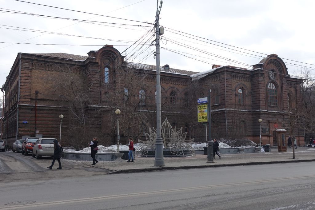 1. Местоположение, роль и градостроительные характеристики зданияКрупное общественное здание рубежа XIX-XX вв., обращённоеглавным фасадом на пр. Мира, расположенное с большим отступом от красной линии, формирующее участок улицы с озеленённым курдонёром с фонтанами.2. Объёмно-пространственная композиция здания на 1881-1909 гг.Двухэтажное с подвалом кирпичное здание на ленточном бутовом фундаменте, в плане в виде разомкнутого каре.Вальмовая металлическая кровля с вентиляционными шахтами.Главный фасад с тремя ризалитами, акцентирующими расположение лестниц, завершёнными полуциркульными щипцами.3. Северный фасад3.1. Композиция северного фасада на 1881-1909 гг.Фасад решён в 15 осей.Два одноосных ризалита фланкируют центральную часть фасада, один одноосный ризалит расположен по центральной оси фасада.Форма, местоположение и размер оконных проёмов и входной двери.3.2. Декор северного фасада на 1881-1909 гг.:призмы ризалитов, акцентированных высокими полуциркульными щипцами;круглые окна междуэтажного пространства, расположенные на боковых ризалитах;большое арочное окно центрального ризалита;большое круглое окно на щипце центрального ризалита;фриз, украшенный зубцами фигурной кирпичной кладки, протянутый под карнизом;кладка под руст на угловых пилястрах и по стене первого этажа;кладка под крупный «квадр» на высоком цоколе;широкий междуэтажный пояс, прорезанный горизонтальными нишками в подоконном пространстве, обрамлёнными с боков лопатками, переходящими над подоконной тягой в оконные наличники;обрамление верха окон второго этажа в виде единого аркатурного пояса;наличники с рядом зубчиков оконных проёмов первого этажа с «замковым камнем», расположенным над ними;вход, акцентированный кирпичным порталом небольшого выноса; оконные проёмы на первом этаже с лучковыми завершениями, оконные проёмы на втором этаже, имеющие арочные завершения.4. Западный фасад4.1. Композиция западного фасада западного крыла на 1881-1909 гг. Фасад решён в 9 осей.Форма, местоположение и размер оконных проёмов.4.2. Декор западного Фасада западного крыла на 1881-1909 гг. кирпичный руст на первом этаже, угловых пилястрах и пилястре в простенке между третьей и четвёртой оконными осями;фриз, украшенный зубцами фигурной кирпичной кладки, протянутый под карнизом;кладка под крупный «квадр» на высоком цоколе;широкий междуэтажный пояс с горизонтальными нишками в подоконном пространстве и пьедесталами пилястр, расположенных в простенках;обрамление верха окон второго этажа в виде единого аркатурного пояса;наличники с рядом зубчиков оконных проёмов первого этажа с «замковым камнем», расположенным над ними;оконные проёмы на первом этаже с лучковыми завершениями, оконные проёмы на втором этаже, имеющие арочные завершения.4.3. Композиция западного фасада восточного крыла на 1881-1909 гг. Фасад решён в 3 оси.С южной стороны выступает лестничный объём в две оконных оси. Форма, местоположение и размер оконных проёмов.4.4. Декор западного фасада восточного крыла на 1881-1909 гг.: кирпичный руст на первом этаже и угловых пилястрах; широкий фриз, протянутый под карнизом;кладка под крупный «квадр» на высоком цоколе; широкий междуэтажный пояс; профилированные наличники окон второго этажа;наличники с рядом зубчиков оконных проёмов первого этажа с «замковым камнем», расположенным над ними;оконн