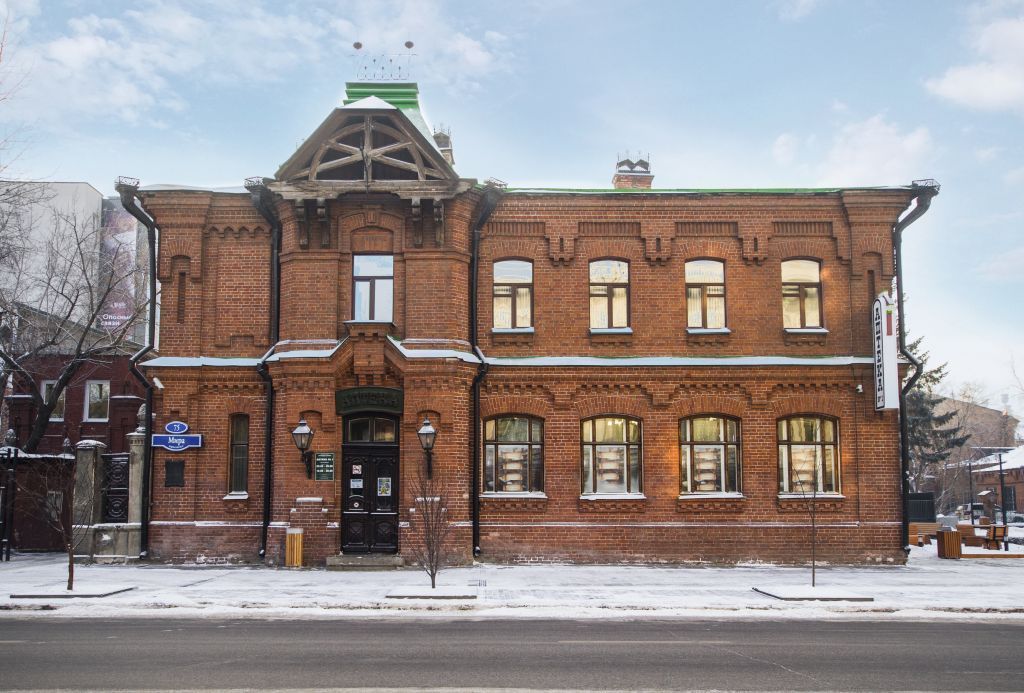 1. Местоположение, роль и градостроительные характеристики зданияЗдание находится в историческом центре города, на южной сторонепр. Мира. В восточной части к зданию примыкает ограда с воротами, соединяющая его с каменными службами усадьбы.2. Объёмно-пространственная композиция здания на нач. ХХ в.Кирпичное двухэтажное здание с подвалом, прямоугольное в плане, с небольшим выступом лестничной клетки у западного фасада.Железная вальмовая крыша с расположенными на ней дымовыми трубами с дымниками из просечного железа.Ризалит главного северного фасада с расположенным в нём парадным входом завершён кровлей в виде усечённой пирамиды.Внутренняя продольная стена делит здание на переднюю половину с торговым залом в обоих этажах и заднюю, включающую два крупных помещения.Кирпичное поле стен выполнено лицевой кладкой. Детали выполнены из кирпича. Оконные переплёты внешних рам и входные, частично остеклённые двери тонированы под дуб и окрашены прозрачным матовым лаком. Кровля, элементы водосточной системы и металлические кровельки деталей фасадов окрашены в зелёный цвет. Металлические дымники окрашены в чёрный цвет.3. Восточный фасад3.1. Композиция восточного фасада на нач. ХХ в.Решён в 2 оконные оси.Ризалит восточного фасада с высоким окном парадной лестницы завершён ступенчатым фризом и прямоугольным аттиком.Справа от ризалита расположена одна оконная ось.Форма, местоположение и размер оконных проёмов.3.2. Декор восточного фасада на нач. ХХ в.Раскрепованные пояса профилированных карнизов и фризов с зубчатыми выемками и крупными декоративными накладками.Оконные проёмы с лучковыми клинчатыми перемычками имеют зубчатые подоконные карнизики.Углы здания поярусно обработаны широкими лопатками с щелевидными нишками.Цоколь гладкий.4. Южный фасад4.1. Композиция южного фасада на нач. ХХ в.Решён в 7 оконных осей, в том числе окон подвала, расположенных в приямках.В крайней западной оси расположена дверь «чёрного» входа.Небольшой прямоугольный аттик. Форма, местоположение и размер оконных и дверных проёмов.4.2. Декор южного фасада на нач. ХХ в.Раскрепованные пояса профилированных карнизов и фризов с зубчатыми выемками и крупными декоративными накладками.Оконные проёмы с лучковыми клинчатыми перемычками имеют зубчатые подоконные карнизики.Углы здания поярусно обработаны широкими лопатками с щелевидными нишками.Цоколь гладкий.5. Западный фасад5.1. Композиция западного фасада на нач. ХХ в.Ступенчатый фасад решён в 3 оконные оси, северное окно первого этажа заложено.Форма, местоположение и размер оконных проёмов.5.2. Декор западного фасада на нач. ХХ в.Раскрепованные пояса профилированных карнизов и фризов с зубчатыми выемками и крупными декоративными накладками.Оконные проёмы с лучковыми клинчатыми перемычками имеют зубчатые подоконные карнизики.Углы здания поярусно обработаны широкими лопатками с щелевидными нишками.Цоколь гладкий.6. Северный фасад6.1. Композиция северного фасада на нач. ХХ в.Решён в 6 оконных осей.Ризалит с парадным входом завершён кровлей в виде усечённой пирамиды.Окна крайней восточной оси имеют щелевидную форму.Форма, местоположение и размер оконных и дверных проёмов.6.2. Декор северного фасада на нач. ХХ в.На кровле ризалита расположен ажурный кованый гребень.Сквозной фронтон, вынесенный на мощных фигурных де