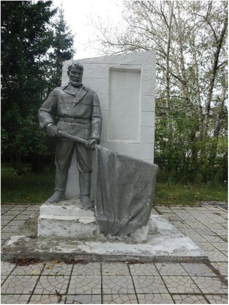 1. Местонахождение объектаОбъект расположен на центральной площади села Партизанского (Партизанский район), ул. Гагарина, 2а.2. Захоронение (могила) в полном объемеЗахоронение тел (останков) людей.3. Надмогильное сооружение3.1. Тип памятника3.1.1 ОбелискКлассическая форма воинского надмогильного сооружения: верхняя часть обелиска – пирамида, нижняя – куб со скошенными верхними гранями, в основании обелиска – пятиступенчатый постамент. Размеры: высота обелиска 2,5 м, размер основания обелиска 0,7 х 0,7 м, высота 1-й ступени постамента 0,25 м, размер основания 1-й ступени постамента 3,6 х 3,6 м, высота 2-й ступени постамента 0,3 м, размер основания 2-й ступени постамента 2,86 х 2,86 м, высота 3-й ступени постамента 0,3 м, размер основания 3-й ступени постамента 2,12 х 2,12 м, высота 4-й ступени постамента 0,3 м, размер основания 4-й ступени постамента 1,38 х 1,38 м, высота 5-й ступени постамента 0,4 м, размер основания 5-й ступени постамента 0,82 х 0,82 м.3.1.2 Скульптурная композицияПамятник в виде гипсовой скульптуры партизана с приспущенным знаменем в руках, стоящего в полный рост у бетонной стены. В северной лицевой части стены – ниша размером 0,6 м х 1,4 м. Скульптура установлена на двухступенчатом бетонном постаменте, в основании – бетонная плита. Высота скульптуры 2,6 м, высота постамента 0,47 м, высота стены 3,35 м, размер основания 1,95 м х 1,65 м.3.2. Техника и материалы памятникаМатериал постамента обелиска – гранит. Материал скульптурной композиции – гипс и бетон.3.3. Особенности обработки поверхностиОбелиск окрашен.Скульптура и постамент оштукатурены и окрашены. Бетонная стена оштукатурена, рустована и окрашена.3.4. Надписи с оригинальными названиями композиций и тексты, введенные в состав памятникаВ нижней части обелиска с восточной и западной сторон – металлические мемориальные доски с текстом: «Здесь похоронен партизан Потылицын Д.М. с группой товарищей погибших в боях с колчаковщиной».3.5. Дополнительные элементы оформления и малые архитектурные формыОбелиск завершен объемной металлической пятиконечной красной звездой. 4. Историческое (мемориальное) значениеПамятник истории, связанный с установлением Советской власти в годы Гражданской войны на территории Красноярского края.