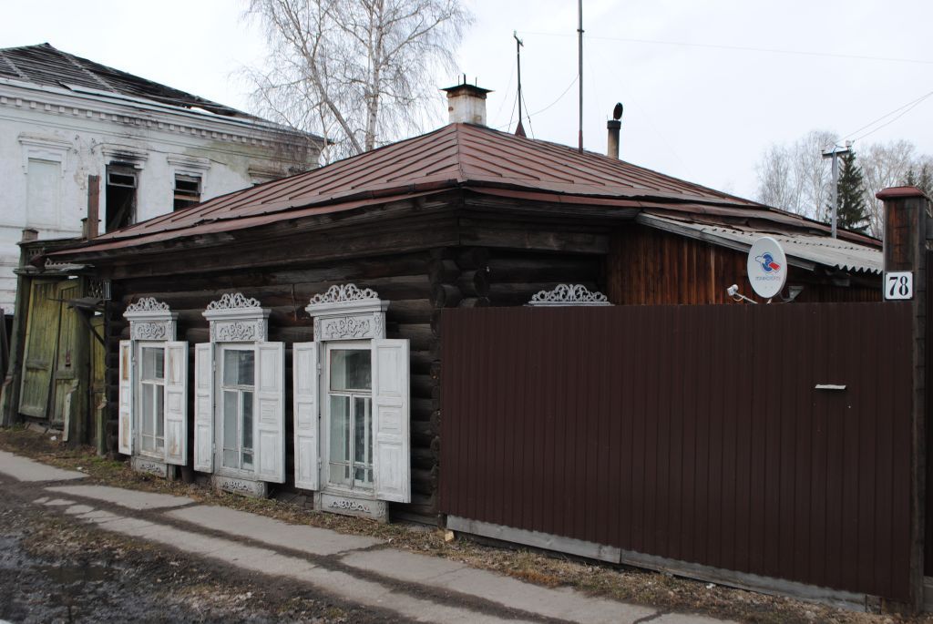 1. Объекты, входящие в состав Усадьбы:объект культурного наследия регионального значения «Дом жилой», середина XIX в., расположенный по адресу: Красноярский край, г. Енисейск, ул. Кирова, 78 (далее – Дом жилой);объект культурного наследия регионального значения «Ворота», середина XIX в., расположенный по адресу: Красноярский край, г. Енисейск, ул. Кирова, 78 (далее – Ворота).2. Местоположение, градостроительная роль, композиционная значимость Усадьба расположена в юго-восточной части квартала, ограниченного ул. Кирова, пер. Партизанским, ул. Ленина и ул. Бабкина, на северной стороне ул. Кирова.Усадьба участвует в формировании планировочной и композиционно-пространственной структуры исторического центра города, сложившейся в соответствии с регулярным планом, входит в состав ансамбля – объекта культурного наследия регионального значения «Застройка улицы», середина XIX в., 1890-е гг., расположенного по адресу: Красноярский край, г. Енисейск, ул. Кирова, 68, 70, 76, 78 (далее – Застройка).3. Тип планировкиУсадебный тип застройки.4. Планировочные осиУсадьба ориентирована вдоль ул. Кирова.5. Характер расположения объектов Усадьбы в пространстве Усадьба расположена в непосредственной близости с объектом культурного наследия регионального значения «Усадьба (дерево)», середина XIX в., расположенного по адресу: Красноярский край, г. Енисейск, ул. Кирова, 76.Дом жилой выходит главным фасадом на линию застройки ул. Кирова, Ворота расположены по обе стороны от него, на этой же линии. Ворота, расположенные с восточной стороны от Дома жилого, соединены с ним заплотом. 6. Соподчинение объектов Усадьбы по размерам и планировочному положению Дом жилой и Ворота имеют единый масштабный строй, вместе формируют южную границу Усадьбы. 7. Силуэтная характеристика Силуэт Усадьбы задан перепадом высотных отметок Дома жилого и Ворот, включен в общий силуэт Застройки.8. Элементы композиции, обеспечивающие совместное целостное восприятие объектов УсадьбыБлизость местоположения и расположение объектов Усадьбы вдоль ул. Кирова обеспечивают благоприятные условия их совместного целостного визуального восприятия в створе ул. Кирова.9. Бассейн видимостиУсадьба раскрывается с участка ул. Кирова, от ее пересечения с пер. Партизанским до сквера, расположенного в центральной части квартала, ограниченного ул. Кирова, пер. Партизанским, ул. Ленина и ул. Бабкина, проходящего через данный квартал в поперечном направлении – от ул. Кирова до ул. Ленина.10. Архитектурно-стилистические характеристикиПример усадьбы середины XIX века с небольшим деревянным домом, фасады которого украшены декором с включением местных декоративных мотивов, и двумя воротами, относящимися к традиционному для деревянного зодчества трехстолбному типу ворот, выполненными в аналогичной стилистике.