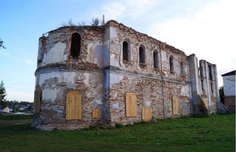 1. Градостроительные характеристики1.1. Местоположение объекта в системе застройкиОбъект расположен в центре села Сухобузимское, на северном берегу р. Сухой Бузим, в застройке ул. Ленина.1.2. Композиционная значимостьЗдание является важным элементом панорамы села, градостроительной доминантой.1.3. Секторы и направления видовых раскрытий, визуальные связи объектаОбъект раскрывается с участка ул. Ленина, ограниченного ул. Жукова и ул. Калинина, со стороны р. Сухой Бузим.2. Архитектурные и конструктивные характеристики2.1. Объемно-пространственная композиция на 1935г.Каменная двухэтажная церковь. Здание церкви имеет в плане продольно-осевую структуру – последовательно расположенные на оси восток-запад объемы: бесстолпный четверик храма с полукруглой апсидой, трапезная, четырехъярусная колокольня с притвором. Храмовый четверик и трапезная имеют одинаковую ширину. Высота первого и второго этажей церкви одинаковая, храмовая часть второго этажа – в два яруса. Колокольню окружает двухэтажная пристройка. Четырехъярусная колокольня представляет собой традиционный восьмерик на четверике, восьмерик и четверик двухъярусные.2.2. Крыши (главы, завершения) на 1935г.Форма крыши над храмом – четырехскатная, над апсидой – полукруглая, над трапезной и пристройкой – двухскатная, над колокольней – восьмигранная. В крышу четверика на каждом фасаде врезаны фигурные полуглавия с люкарнами.Очертание крыши храма, колокольни, завершений под и над барабанами барочного профиля с изогнутыми ребрами.Храм завершен композицией, состоящей из восьмигранных барабанов: светового, приподнятого на трибуне, и глухого, убывающих вверх по высоте и ширине.Апсида завершена композицией из двух восьмигранных глухих барабанов, убывающих вверх по высоте и ширине.Колокольня завершена двумя глухими восьмигранными барабанами.Барабаны оформлены вертикальными волютами с сильно выступающим низом и незначительно выступающим верхом.Церковь имеет три главы луковичной формы, завершенные позолоченными крестами: на апсиде, храме и колокольне.Кровля металлическая.2.3. Композиция и архитектурно-художественное оформление фасадов2.3.1. Северный фасад2.3.1.1. Композиция северного фасадаВ уровне первого этажа: в составе трапезной – одна оконная ось, в составе четверика – одна оконная ось, одна дверная ось.В уровне второго этажа: в составе трапезной – две оконных оси, в составе четверика – три оконных оси, в составе пристройки – одно окно меньшего размера, чем остальные окна здания.В уровне второго яруса второго этажа : в составе четверика – три оконных оси.Оконные проемы прямоугольной формы с полуциркульным завершением.Фасад разделен междуэтажным поясом незначительного выноса, завершен венчающим карнизом.Широкие лопатки в местах примыкания внутренних капитальных стен.Дверной проем прямоугольной формы с коробовым завершением.2.3.1.2. Декор северного фасада:обрамление оконных проемов первого этажа слегка выступает из плоскости стены в виде наличников с дугообразными ушами и фигурным завершением по центру, с профилированным подоконным карнизом несложного профиля с каплями;обрамление дверного проема первого этажа четверика в виде наличника барочной формы;обрамление оконных проемов второго этажа слегка выступает из плоскости стены в виде сложной формы картуша с омегообр