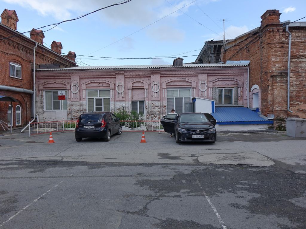 1. Градостроительные характеристики1.1. Местоположение здания в системе городской застройкиЗдание расположено в историческом центре города Ачинска, входит в состав усадьбы, занимающей южный угол квартала, ограниченного ул. Ленина, ул. Дзержинского, ул. Пузановой и Театральным сквером. Главным фасадом здание обращено во двор усадьбы. 1.2. Композиционная значимостьЗдание участвует в формировании северо-восточной границы усадьбы.1.3. Габариты и силуэт Габаритные размеры в плане (18,4 х 9,6 м), высотные отметки здания на начало ХХ века.1.4. Секторы и направления видовых раскрытий, визуальные связи объектаВизуальное раскрытие здания с дворовой территории усадьбы.2. Архитектурные и конструктивные характеристики здания на начало ХХ века2.1. Объемно-пространственная композиция Одноэтажное, протяженное по оси северо-запад – юго-восток, прямоугольное в плане, с подвалом, под односкатной крышей (со скатом на юго-западную сторону) здание. С северо-западной стороны завозня примыкает к конторско-складскому корпусу, с юго-западной – к лавке.2.2. Планировочная структура Планировочная схема в габаритах капитальных конструкций несущих стен и перекрытий. Поперечной несущей стеной (с проемом у южного угла) на первом этаже в северной части здания выделено узкое помещение. Продольной несущей стеной (с тремя симметрично расположенными проемами) подвал разделен на два равновеликих помещения. Подвал завозни сообщается с подвалом лавки через проем, рядом с которым, в южном углу, расположена межэтажная лестница.2.3. Композиция и архитектурно-художественное оформление фасадов 2.3.1. Юго-западный фасад Композиция фасада Фасад симметричный, решен в пять осей проемов прямоугольной формы (на центральной оси расположен дверной проем, остальные проемы оконные), завершен массивным профилированным карнизом среднего выноса.Простенки оформлены широкими плоскими лопатками с несколько выступающей верхней половиной. Лопатки, фланкирующие дверной проем, завершены профилированным карнизом, выступающим за плоскость венчающего карниза здания. Декоративное оформление фасада:обрамление проемов в виде широких плоских боковин, завершенное трапециевидным сандриком с тонким карнизом в один кирпич (по бокам сандрика свесы в виде двух вертикальных лент);декоративный элемент из кирпича в виде кольца, пересекаемого тремя вертикальными лентами, расположенный в завершении лопаток.2.3.2. Северо-восточный фасад Композиция фасада Фасад глухой (не имеет проемов).2.4. Виды отделки поверхности и колористическое решение фасадов на начало ХХ векаСтены лицевой кладки (без отделки) из натурального красного кирпича.2.5. Проемы Местоположение, габариты и форма проемов, материал (дерево) оконных рам и входной двери. 2.6. Конструктивные элементы:фундамент ленточный бутовый на известково-песчаном растворе;перекрытие подкровельного пространства – своды Монье;межэтажное перекрытие – продольные коробовые своды с распалубками над проемами внутренней продольной стены подвала;перемычки наружных проемов – металлические тавровые балки;стены кирпичные со связями и перемычками;крыша с кровлей из гладких металлических листов по деревянным стропилам и обрешетке, с прямоугольным слуховым окном под двухскатной кровлей.3. Нематериальные ценностные характеристики:дата постройки – начало ХХ века