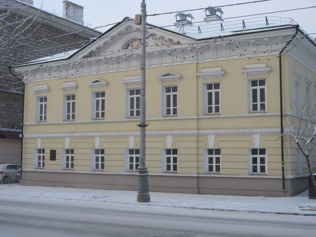 1.Местоположение, роль и градостроительные характеристики здания Здание расположено в исторической части города Красноярска, главным южным фасадом обращено на пр. Мира.2.Объёмно-пространственная композиция здания на 1820-1823 гг.Двухэтажный с подвалом кирпичный дом, П-обратный в плане. Крыша здания вальмовая над основным объёмом, двускатная над выступающими частями северного фасада. Главный вход расположен со стороны западного фасада здания. Планировочную структуру здания образуют капитальные продольные и поперечные стены. На первом этаже две капитальные продольные стены вычленяют в западной и центральной части здания коридор, по сторонам которого в передней и задней половинах здания расположено по три помещения различной площади, образованных тремя поперечными капитальными стенами. В восточной части здания продольная капитальная стена вычленяет два помещения. В западном выступе северного фасада расположено квадратное помещение с лестницей. Помещение в восточном выступе северного фасада расчленено поперечной капитальной стеной на две неравные комнаты. Планировочная структура второго этажа почти полностью повторяет структуру первого. В отличие от первого этажа в юго-западной части второго этажа здания устроен крупный шecтиoкoнный зал.3.Восточный фасад3.1.Композиция восточного фасада на 1820-1823 гг. Симметричная композиция фасада решена в семь осей.Окна первого этажа имеют меньшую высоту, чем окна второго этажа. Форма, местоположение и размер оконнных и дверных проёмов.3.2.Декор восточного фасада на 1820-1823 гг.Прямоугольные сандрики на фигурных кронштейнах над окнами второго этажа, клинчатые замковые камни над окнами первого этажа.Профилированный зубцовый карниз, венчающий фасад, декоративный фриз дорического ордера в виде метрического ряда чередующихся триглифов и метопМеждуэтажный профилировапный карниз.Горизонтальные тяги простого профиля под окнами первого и второго этажей.Руст в уровне первого этажа.4.Южный фасад4.1.Композиция южного фасада на 1820-1823 гг. Симметричная композиция фасада решена в семь осей оконных проёмов на каждом этаже (три оси расположены в ризалите, соответствующем центральной оси). Симметрия фасада подчёркнута треугольным фронтоном с полуциркульным проёмом в тимпане.Окна первого этажа имеют меньшую высоту, чем окна второго этажа. Форма, местоположение и размер оконных и дверных проёмов.4.2.Декор южного фасада па 1820-1823 гг. Прямоугольные и треугольные сандрики на фигурных кронштейнах над окнами второго этажа.Клинчатые замковые камни над окнами первого этажа. Профилированный зубцовый карниз фронтона.Профилированный зубцовый карниз, венчающий южный фасад.Декоративный фриз дорического ордера в виде метрического ряда чередующихся триглифов и метоп.Междуэтажный профилированный карниз.Горизонтальные тяги простого профиля под окнами первого и второго этажей.Руст в уровне первого этажа.5. Западный фасад5.1.Композиция западного фасада на 1820-1823 гг. Симметричная композиция фасада решена в семь осей оконных проёмов.На второй от северного угла оси расположен главный вход в здание. Форма, местоположение и размер оконных и дверных проёмов.5.2.Декор западного фасада на 1820-1823 гг. Прямоугольные и треугольные сандрики на фигурных кронштейнах расположены над окнами второго этажа.Клинчатые замковые камни 