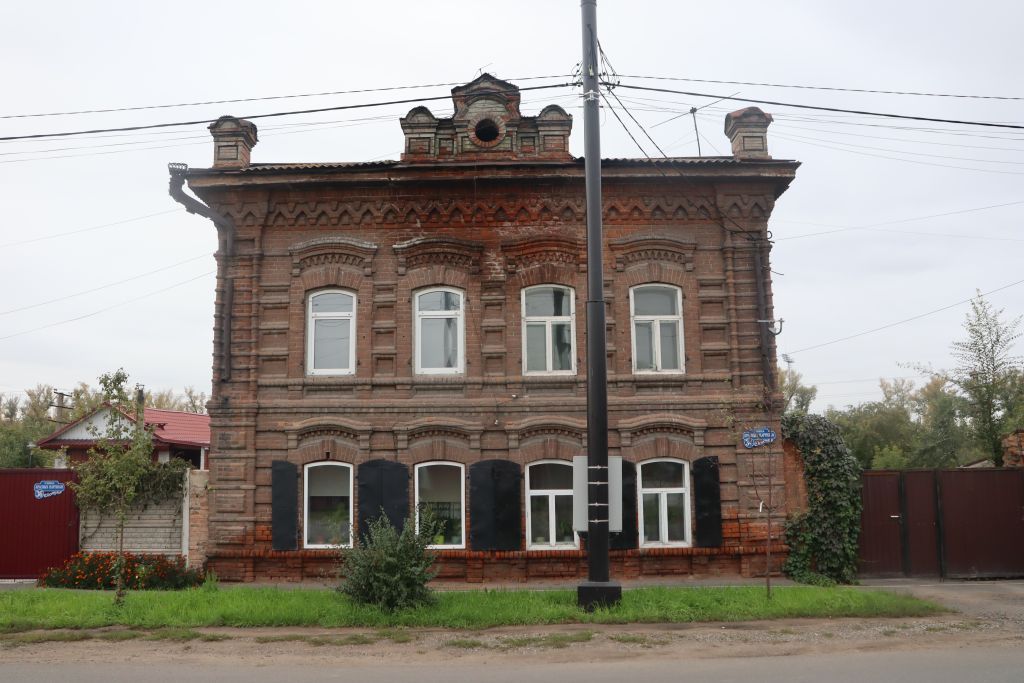 1. Градостроительные характеристики1.1. Местоположение объекта в системе городской застройкиОбъект расположен в историческом центре, на ул. Штабная (бывшая ул. Петра Великого). 1.2. Композиционная значимостьВажный элемент комплекса исторической застройки центра города.1.3. Габариты и силуэтГабариты основного объема здания 12,20 х 11,95 м, каменной пристройки – 5,45 х 4,45 м.1.4. Секторы и направления видовых раскрытий, визуальные связи памятникаВидовые раскрытия с ул. Штабная, на которую объект выходит северо-западным фасадом.2. Архитектурные и конструктивные характеристики2.1. Объемно-пространственная композиция на рубеж ХIХ–ХХ вв.Двухэтажное прямоугольное в плане здание с прямоугольной в плане пристройкой к юго-восточному фасаду, которая продлена до восточного угла здания пристройкой главного входа с лестницей на второй этаж. Пристройки объединены открытой юго-восточной галереей.2.2. Конструкция крыши Основной объем здания под вальмовой крышей, над пристройками крыша односкатная с металлической кровлей по деревянным стропилам и обрешетке. 2.3. Композиция и архитектурно-художественное оформление фасадов на рубеж ХIХ–ХХ вв.2.3.1. Северо-западный фасад Композиция северо-западного фасадаРешен в пять осей.Форма, местоположение и размер проемов.Декор северо-западного фасадаУглы подчеркнуты филенчатыми пилястрами, верхняя из филенок имеет круглую форму.Профилированные пояса межэтажного и небольшого выноса венчающего карнизов с поясами зубчиков.Окна обрамлены наличниками, клинчатые перемычки которых слегка изогнуты и отмечены замковым камнем.Над окнами первого этажа прямые сандрики на фигурных консольках.Окна второго этажа украшены наличниками, завершенными лучковыми сандриками, карнизы которых с поясами мелких сухариков.Между сандриками расположены кольцеобразные вставки.2.3.2. Северо-восточный фасадКомпозиция северо-восточного фасадаРешен в четыре оси и продолжен одноосной деревянной пристройкой.Форма, местоположение и размер проемов.Декор северо-восточного фасадаУглы подчеркнуты филенчатыми пилястрами, верхняя из филенок имеет круглую форму.Профилированные пояса межэтажного и небольшого выноса венчающего карнизов с поясами зубчиков.Окна второго этажа обрамлены наличниками, клинчатые перемычки которых слегка изогнуты и отмечены замковым камнем.Над окнами второго этажа лучковые сандрики, карнизы которых с поясами мелких сухариков.2.3.3. Юго-восточный фасадКомпозиция юго-восточного фасадаРешен в две оси основного объема, который дополнен двумя осями окон каменной пристройки и одной осью деревянной пристройки.Форма, местоположение и размер проемов.Декор юго-восточного фасадаЮжный угол основного объема отмечен пилястрой.Профилированный небольшого выноса венчающий карниз основного объема с поясами зубчиков.На фасаде каменной пристройки междуэтажный карниз с сухариками.Окна с клинчатыми перемычками без наличников.2.3.4. Юго-западный фасадКомпозиция юго-западного фасадаНе имеет проемов.Декор юго-западного фасадаУглы основного объема подчеркнуты пилястрами (у западного угла филенчатая).Профилированные пояса межэтажного и небольшого выноса венчающего карнизов с поясами зубчиков.2.4. Виды отделки фасадной поверхности на рубеж ХIХ–ХХ вв.Лицевая кирпичная кладка.2.5. Колористическое решение фасадов на рубеж ХIХ–ХХ 