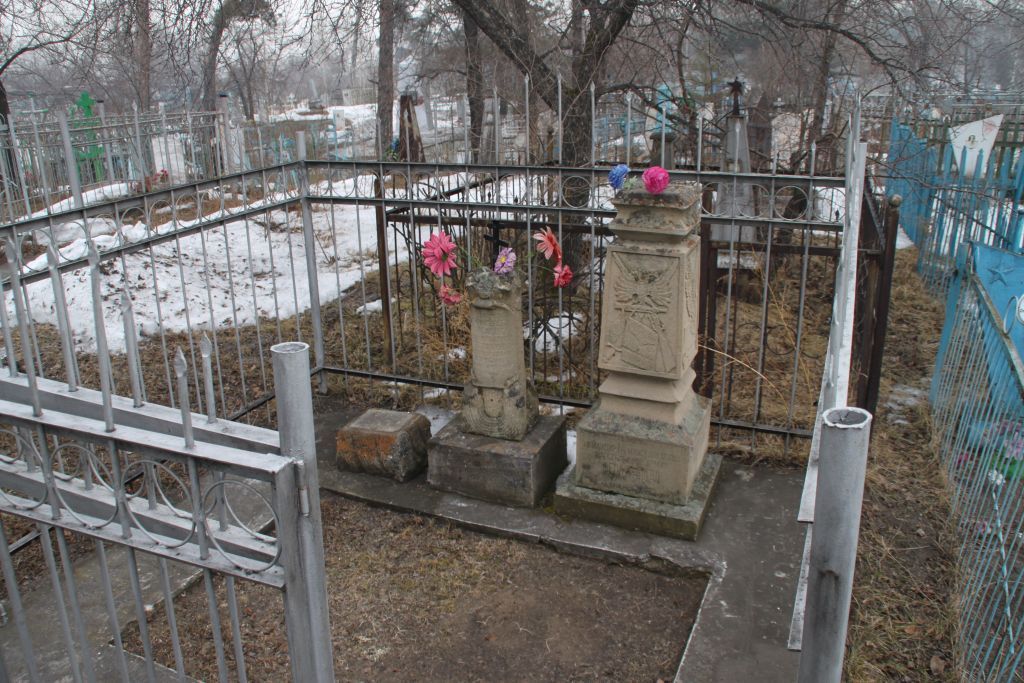 1. Местонахождение памятникаСеверо-западная часть кладбища «Старое» города Минусинска, рядом (на одной территории) с объектом культурного наследия регионального значения «Братская могила Исакова Ефима Александровича, командира 1-го батальона Манского полка партизанской армии Кравченко-Щетинкина и Белянина Ильи Андреевича, партизана».2. Захоронение (могила) в полном объёмеЗахоронение тела (останков) человека.3. Надгробное сооружение3.1. Тип памятника Трёхчастный, квадратный в плане обелиск на основании (постаменте), выполненном в форме прямоугольного параллелепипеда. Нижняя часть обелиска выполнена в форме прямоугольного параллелепипеда, средняя – по форме представляет собой четырёхгранную усечённую пирамиду (имеет небольшое сужение кверху). Нижняя и средняя части соединены между собой переходом в виде скоции, завершённой четырёхгранной усечённой пирамидой. Третья (верхняя) часть обелиска представляет собой две невысокие усечённые пирамиды (верхнюю и нижнюю (перевёрнутую)), соединённые между собой шейкой.Размеры памятника: высота обелиска – 1,23 м, площадь основания обелиска – 0,45 х 0,45 м, размеры постамента – 0,10 м х 0,60 м х 0,60 м.3.2. Техника и материалы памятникаОбелиск высечен из светло-коричневого песчаника.3.3. Особенности обработки поверхности Шлифовка поверхности обелиска и постамента, высекание при нанесении мемориальных надписей, рельефных изображений.3.4. Надписи с оригинальными названиями композиций и тексты, введённые в состав памятникаНа западной стороне нижней части обелиска высечена надпись в рамке в виде свитка: «КОМАНДИР Iго МАНСКАГО ПОЛКА КРЕСТЬЯНСКОЙ АРМИИ ФЕДОР БОГАН». На южной стороне нижней части обелиска высечена надпись в рамке в виде свитка: «И СОЛДАТ КРЕСТ. АРМ. АНДРЕЙ КОСОВ». На северной стороне нижней части обелиска высечена надпись в рамке в виде свитка: «ПАВШИЕ ЖЕРТВОЮ ГЕРОЕВ, БОРЮЩИХСЯ ЗА ОСВОБОЖДЕНИЕ ТРУДЯЩИХСЯ ОТ ГНЕТА КАПИТАЛА И НАГАЙКИ». На восточной стороне нижней части обелиска высечена надпись в рамке в виде свитка: «ОТ КРЕСТЬЯНСКОЙ АРМИИ».3.5. Дополнительные элементы оформления и малые архитектурные формыСо всех сторон на гранях средней части обелиска высечены барельефные изображения символов Гражданской войны, а также растительный орнамент. На западной грани постамента высечено изображение серпа и молота.Шейка обелиска украшена поверху невысоким рельефом в виде стрельчатого аркатурного пояса, опирающегося на пояс из ромбиков, проходящий посередине шейки.4. Историческое (мемориальное) значениеПамятник, связанный с событиями Гражданской войны на территории Красноярского края, историей партизанского движения.5. Художественная ценностьОригинальное надмогильное сооружение, выполненное в виде фигурного обелиска с элементами художественной резьбы по камню.