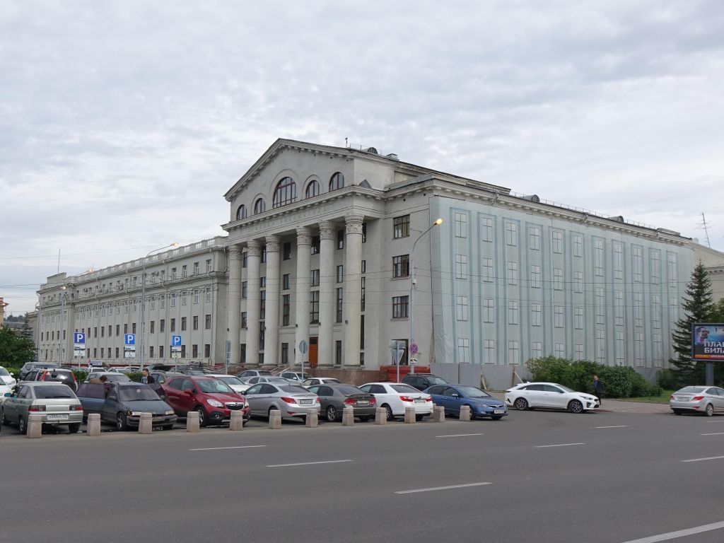 1. Местоположение, роль и градостроительные характеристики зданияЗдание расположено в историческом центре города, является элементом ансамбля площади Революции и формирует её восточную кулису между пр. Мира и ул. Карла Маркса. 2. Объёмно-пространственная композиция зданияКрупное административно-общественное четырёхэтажное кирпичное здание, С-образное в плане, выполнено в стиле советской неоклассики.Основной южный корпус здания – крупный в плане объём библиотеки под вальмовой крышей. С севера к южному корпусу примыкает административный корпус коридорного типа с нарезкой помещений в виде кабинетов по обеим сторонам. 3. Западный фасад3.1. Композиция фасада на начало 1950 гг.Фасад асимметричный, решён в двадцать девять оконных осей.Шестиколонный портик завершён треугольным фронтоном южной части здания, соединён протяжённым административным корпусом с пятиосным ризалитом северной части здания.В северной и южной части здания расположены две широкие каменные лестницы. Форма, местоположение и размер оконных проёмов.3.2. Декоративное оформление фасада на начало 1950 гг.:стены цокольного этажа оштукатурены под руст крупными блоками с перевязкой в виде цепной кладки, выше цоколя – штукатурка «под шубу»;двадцать пилястр в три этажа с ионическими капителями;междуэтажный фриз с крупнопрофилированным карнизом значительного выноса;венчающий карниз;парапетные тумбы, соединённые секциями из балюстрад; колонны композитного ордера, поддерживающие антаблемент с модульонами прямоугольной формы;надпись «краевая библиотека» на фризе шестиколонного портика;пять полуциркульных окон с архивольтами, расположенных на фронтоне южного корпуса;барельеф над входом северного административного корпуса с изображением советской символики.4. Южный фасад4.1. Композиция фасада на начало 1950 гг.Фасад асимметричный, решён в десять оконных осей в четыре этажа, с запада пять осей в четыре ряда окон, с востока пять осей в три ряда окон.Одноосный портик примыкает к южному корпусу.Форма, местоположение и размер оконных проёмов.4.2. Декоративное оформление фасада на начало 1950 гг.:венчающий крупнопрофилированный карниз значительного выноса с модульонами прямоугольной формы;стены цокольного этажа оштукатурены под руст крупными блоками с перевязкой в виде цепной кладки, выше цоколя – штукатурка «под шубу»;вертикальные неглубокие ниши по осям оконных проёмов.5. Северный фасад5.1. Композиция фасада на начало 1950 гг.Фасад асимметричный, решён в десять оконных осей в четыре этажа, верхний трактован как аттиковый.Форма, местоположение и размер оконных проёмов.5.2. Декоративное оформление фасада на начало 1950 гг.:стены цокольного этажа оштукатурены под руст крупными блоками с перевязкой в виде цепной кладки, выше цоколя – штукатурка «под шубу»;десять пилястр в три этажа с ионическими капителями;междуэтажный фриз с крупнопрофилированным карнизом значительного выноса; венчающий карниз; парапетные тумбы, соединённые секциями из балюстрад. 6. Восточный фасад6.1. Композиция фасада северного административного корпуса на начало 1950 гг.Асимметричный фасад решён в две оконные оси;Форма, местоположение и размер оконных проёмов.6.2. Декоративное оформление фасада северного административного корпуса на начало 1950 гг.:стены цокольного этажа оштукатурены под руст крупными б