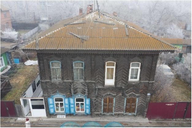 1. Градостроительные характеристики1.1. Местоположение объекта в системе городской застройки Объект расположен в историческом центре города, в квартале, ограниченном ул. Октябрьской, ул. Штабной, ул. Мира и ул. Ачинской, юго-западным фасадом выходит на красную линию ул. Октябрьской. 1.2. Композиционная значимостьВажный элемент комплекса исторической застройки центра города.1.3. Габариты и силуэтГабариты в плане и высотные отметки здания на конец XIX века.1.4. Секторы и направления видовых раскрытий, визуальные связи объекта Объект раскрывается с участка ул. Октябрьской, ограниченного ул. Ачинской и ул. Штабной, а также с прилегающей дворовой территории.2. Архитектурные и конструктивные характеристики2.1. Объемно-пространственная композиция на конец XIX века Двухэтажный, прямоугольный в плане (вытянутый в сторону двора) дом, с каркасной двухэтажной пристройкой сеней с северо-восточной стороны.2.2. Конструкция крыши на конец XIX векаКрыша основного объема здания вальмовая, крыша пристройки односкатная. Кровля металлическая по деревянным стропилам и обрешетке. На северо-восточном скате крыши основного объема устроено крупное слуховое окно лучкового завершения.2.3. Композиция и архитектурно-художественное оформление фасадов на конец XIX века2.3.1. Юго-западный фасадКомпозиция фасада Фасад решен в четыре оси проемов с лучковым завершением, завершен подшивным карнизом большого выноса и широким фризом, набранным из вертикально закрепленных дощечек. Третьей оси соответствует балкон (утрачен) с дверным проемом, остальные проемы – оконные.Углы и перерубы оформлены лопатками.Декоративное оформление фасада:накладной орнамент геометрического рисунка и элементы в виде четырехлистника в оформлении лопаток;наличники окон первого этажа (лобань наличников с треугольным подвышением, украшенная в центре круглой накладкой, симметрично обрамленной накладными элементами геометрической формы; карниз лобани, украшенный пропильной накладной резьбой и опирающийся на стилизованные двухчастные прямоугольные кронштейны пропильной накладной резьбы; волютообразные элементы («уши») под свесом карниза по бокам лобани; фигурно опиленный фартук наличника, украшенный в центре круглой накладкой, симметрично обрамленной накладными элементами геометрической формы; точеные «рюмочки», расположенные над карнизом, по центральной оси и по осям боковин);наличники окон второго этажа (точеные полубалясины в оформлении боковин; лобань наличников с треугольным подвышением, украшенная в центре круглой накладкой, симметрично обрамленной накладными элементами геометрической формы; карниз лобани, украшенный пропильной накладной резьбой и опирающийся по бокам на стилизованные двухчастные прямоугольные кронштейны пропильной накладной резьбы; волютообразные элементы («уши») под свесом карниза по бокам лобани и такие же элементы по бокам фартука; фигурно опиленный фартук наличника, украшенный в центре круглой накладкой, симметрично обрамленной накладными элементами геометрической формы, и фланкированный небольшими круглыми накладками; точеные «рюмочки», расположенные над карнизом, по центральной оси и по осям боковин);профилированные тяги, раскрепованные по лопаткам, проходящие в уровне фартуков оконных проемов первого и второго этажей; свес фриза, обрабо