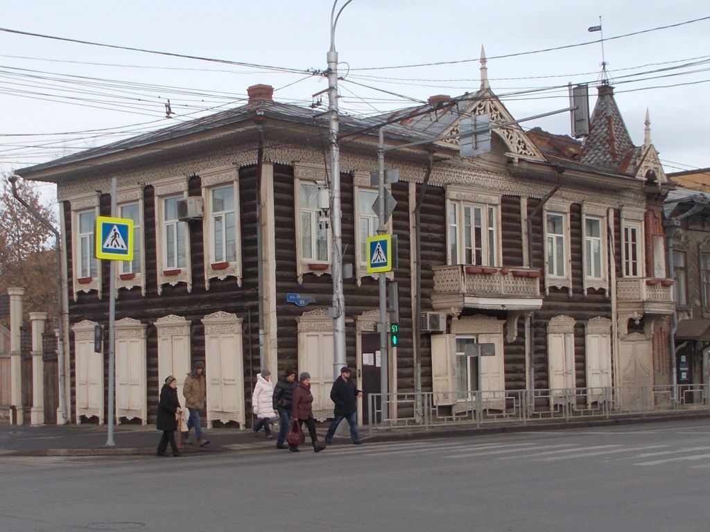 I. Дом1. Градостроительные характеристики1.1. Местоположение объекта в системе городской застройкиОбъект расположен в историческом центре, на углу перекрестка улиц Ленина и Перенсона, по линии застройки улиц.1.2. Композиционная значимостьЭлемент комплекса деревянной жилой застройки, вместе с воротами формирует пересечение улиц Ленина и Перенсона.1.3. Габариты и силуэт:габариты и высота здания до конька кровли на 1914 г.1.4. Секторы и направления видовых раскрытий, визуальные связи памятникаОбъект выходит 6-осным главным южным фасадом на ул. Ленина, 4-осным западным – на ул. Перенсона. Видовые раскрытия – створ и перекресток улиц Ленина и Перенсона (все фасады здания, кроме восточного, прилегающего к соседнему зданию).2. Архитектурные и конструктивные характеристики2.1. Объемно-пространственная композиция на 1914 г.Двухэтажный бревенчатый дом, рубленный в лапу, прямоугольный в плане. Лестничная пристройка, примыкающая к дому с востока, занимает всю его ширину. Основной объем южного фасада имеет трехчастную структуру, средняя часть на главном фасаде выделена фронтоном. Подобный, но меньшего размера фронтон, – перед высоким 4-гранным шатром над лестничной пристройкой. По оси главного фасада – широкие четырехстворчатые проемы и балкон с деревянным резным ограждением, который поддерживают фигурные кронштейны с гирьками, балкончик над парадным входом в лестничной пристройке. У лестничной пристройки к наружной стене примыкает кирпичный брандмауэр, торец которого оформлен карнизами и тройными вертикальными бороздками. С севера, продолжая линию фасада, прилегает забор с воротами.2.2. Конструкция крыши на 1914 г.Крыша вальмовая с кровлей по деревянным стропилам и обрешетке, с шатром с чешуйчатой кровлей, завершенным шпилем с гнутыми элементами в основании и металлическим флажком.2.3. Композиция и архитектурно-художественное оформление фасадов на 1914 г.2.3.1. Южный фасадКомпозиция фасада:решен в шесть осей, из которых крайняя восточная ось в уровне первого этажа представлена дверным проемом пристройки с парадным входом;углы и места перерубов отмечены лопатками;окна первого этажа имеют ставни;высокий 4-гранный шатер над лестничной пристройкой;фронтон с резьбой между брусьями, поддерживающими лучковую арочку;в тимпане – полукруглое оконце в резном обрамлении;подобный, но меньшего размера фронтон перед шатром (ось лестничной пристройки);балконы в уровне второго этажа по первой и четвертой оси с востока;широкий резной фриз и подшивной карниз значительного выноса;размер и форма окон.Декоративное оформление фасада:наличники окон, украшенные накладной и пропильной резьбой растительного орнамента;филенчатые двухчастные ставни с резными накладками, выполненные в стиле деревянного модерна;двустворчатые филенчатые двери парадного входа, украшенные резными накладками, выполненные в стилистике деревянного модерна;широкий изящного рисунка фриз пропильной резьбы растительного орнамента;подшивной профилированный карниз с легким подзором геометрического орнамента;лопатки;резные ограждения балконов, поддерживаемых резными кронштейнами с гирьками.2.3.2. Северный фасадКомпозиция фасада:решен в восемь осей, из которых первая восточная ось в уровне первого этажа представлена входом в лестничную пристройку;углы и места перерубов отмечены ло