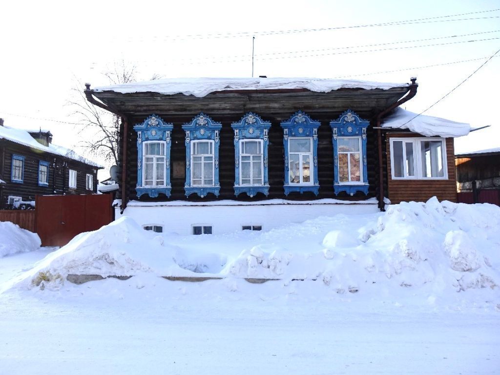 1. Местоположение, роль и градостроительные характеристики зданияЗдание расположено в квартале, ограниченном ул. Ванеева, ул. Ленина, ул. Лыткина, ул. Лазо. Расположено в линии застройки западной стороны ул. Ванеева.2. Объёмно-пространственная композиция здания Одноэтажный деревянный, прямоугольный в плане, дом на кирпичном подклете под вальмовой крышей. К боковому (северному) фасаду основного объёма дома пристроены тёплые сени из бруса и дощатые холодные сени с лестницей и остеклённой верандой, имеющие выходы во двор и на улицу. Основной объём покрыт вальмовой крышей. Тёплые сени покрыты двускатной крышей с торцевым фронтоном, врезанной в боковой скат крыши основного объёма. Над пониженным объёмом холодных сеней устроена крыша на два ската. В подклет ведут две наружные лестницы, расположенные вдоль стен основного объёма с южной и северной сторон. В верхний этаж ведёт парадная лестница в холодных сенях. Общие размеры дома 13,68 x 14,7 м (по подклету, с учётом пристроек), размеры основного объёма 14,7 x 10,8 м.3. Внутренняя планировкаДом в плане имеет трёхчастное членение – поперечные капитальные стены выделяют в средней части коридор, вытянутый от парадного входа до южной стены и делящий дом на две жилые половины; в подклете в каждой из половин размещено по две комнаты, а в западной половине верхнего этажа – три комнаты.4. Колористическое решениеСтены верхнего этажа бревенчатые, неокрашенные. Наличники, карниз и фриз окрашены масляными красками светлых тонов Кирпичная стена подклета окрашена известковыми красками светлых тонов. Железная кровля, и водосточные трубы окрашены в красно-коричневый цвет (сурик железный). 5. Условия зрительного восприятияРаскрывается с участка ул. Ванеева, ограниченного ул. Ленина и ул. Лазо.6. Северный фасад дома6.1. Композиция северного фасада дома на конец ХIХ в.Фасад основного объёма решён в одну оконную ось.Фасад тёплых сеней решён в одну оконную ось.Фасад холодных сеней решён в одну дверную ось с остеклением веранды. Тёплые сени из бруса расположены по центру фасада основного объёма и завершены треугольным фронтоном со слуховым окном трапециевидной формы в тимпане.Каркасные дощатые холодные сени примыкают с востока к тёплым сеням (в настоящее время стены обшиты сайдингом).С запада к тёплым сеням примыкает дощатая пристройка с входом в подклет. Под свесом крыши основного объёма и тёплых сеней проходит профилированный карниз большого выноса с дощатым фризом.Под свесом крыши холодных сеней проходит профилированная карнизная доска.Форма, местоположение и размер оконных и дверного проёмов.6.2. Декор северного фасада дома на конец ХIХ в.:наличники окна тёплых сеней с профилированным сандриком, опирающимся на резные кронштейны, разорванным встречными волютами, украшенными фестонами, между которыми резной элемент в виде аканта, с лобанью, разделённой калёванной рейкой с полуциркульным подвышением по центру, украшенной звёздами накладной глухой резьбы, накладной деталью с «ушами» и серьгами, декорированной солярным символом и звёздами накладной глухой резьбы, с боковыми обвязками криволинейных очертаний в верхней и нижней части, по центру украшеными накладными ромбическими решётками пропильной резьбы, с нижней частью криволинейных очертаний, обработанной глухой резьбой по периметру и украшенной ре
