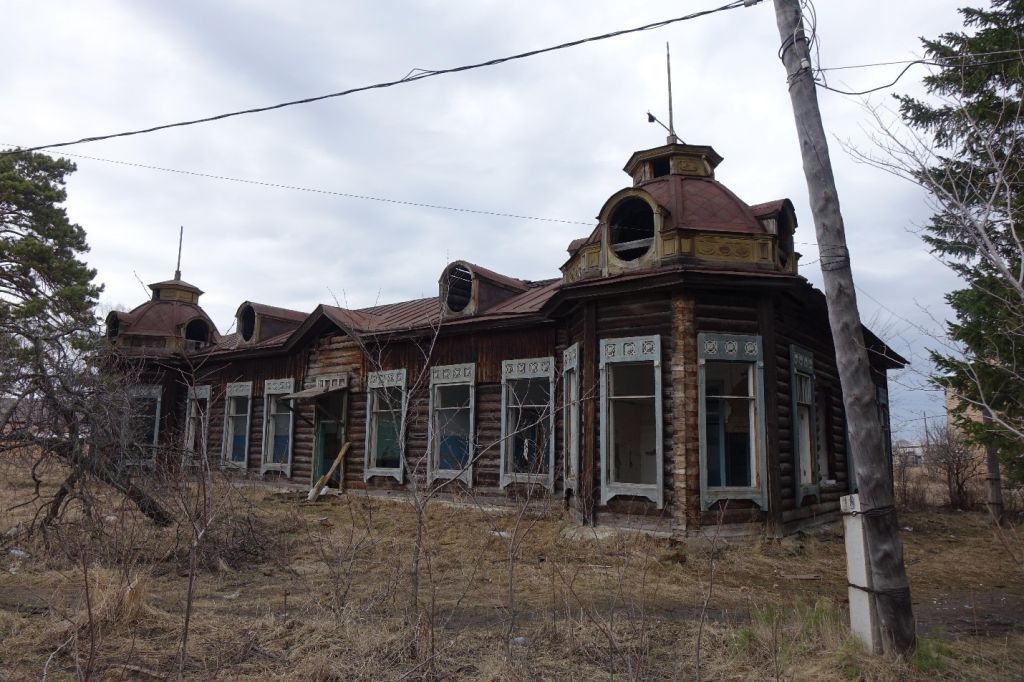 1. Градостроительные характеристики1.1. Местоположение объекта в системе застройки: здание расположено в исторической части села Тюхтет.1.2. Композиционная значимость:здание включено в больничный комплекс.1.3. Секторы и направления видовых раскрытий, визуальные связи памятника:раскрывается с участка ул. Советская, ограниченного ул. Пролетарская и ул. Комсомольская, со стороны подъезда к зданию по ул. Восточная.2. Архитектурные и конструктивные характеристики2.1. Объемно-пространственная композиция на посл. четв. XIX в.Объект представляет собой П-образное в плане одноэтажное деревянное здание с трапециевидными в плане угловыми ризалитами главного (юго-западного фасада), соответствующими боковым крыльям, выступающим с северо-восточной стороны. С северо-западной стороны к основному объему здания примыкает прируб.2.2. Конструкции крыши на посл. четв. XIX в.Крыша вальмовая с железной под окраску кровлей по деревянным стропилам и обрешетке.Над ризалитами юго-западного фасада здания два куполообразных завершения на барабанах, врезанных в крышу; грани куполов (через одну, за исключением северо-восточной грани) прорезаны крупными овальными слуховыми окнами; над куполами небольшие восьмигранные барабаны под шатровыми крышами, увенчанными шпилями; грани барабанов украшены накладной резьбой.Крупные овальные слуховые окна над центральной частью здания с юго-западной стороны и прямоугольное под двускатной крышей – с северо-восточной.2.3. Композиция и архитектурно-художественное оформление фасадов2.3.1. Юго-западный фасад на посл. четв. XIX в.2.3.1.1. Композиция юго-западного фасадаУгловые ризалиты, оформленные в виде ротонды, решены в три оси прямоугольных окон каждый.Углы ризалитов отмечают прямые лопатки.Фасад центральной части решен в шесть оконных и одну дверную ось, все проемы прямоугольные.Дверной проем парадного входа оборудован козырьком.Вход акцентирован небольшим треугольным щипцом.Фасад завершен подшивным карнизом большого выноса с широким дощатым фризом.2.3.1.2. Декор юго-западного фасада:наличники проемов с прямой лобанью, декорированной объемной резьбой геометрического и растительного орнамента;нижняя часть наличника прямая с фигурной нижней гранью и свесами.2.3.2. Северо-западный фасад на посл. четв. XIX в.2.3.2.1. Композиция северо-западного фасадаУглы фасада отмечают прямые лопатки.Фасад решен в 5 оконных осей, две из которых расположены в прирубе, все проемы прямоугольные.Фасад завершен подшивным карнизом большого выноса с широким дощатым фризом.2.3.2.2. Декор северо-западного фасада:наличники окон с прямой лобанью, декорированной объемной резьбой геометрического и растительного орнамента;нижняя часть наличника прямая с фигурной нижней гранью и свесами.2.3.3. Северо-восточный фасад на посл. четв. XIX в.2.3.3.1. Композиция северо-восточного фасадаУглы фасада отмечают прямые лопатки.Фасады боковых крыльев решены в три оси проемов каждый. На фасаде юго-восточного крыла оконные проемы, северо-западного крыла – два оконных и один дверной, расположенный по центру. Фасад центральной части решен в четыре оконных и одну дверную ось, расположенную по центру.Фасад завершен подшивным карнизом большого выноса с широким дощатым фризом.2.3.3.2. Декор северо-восточного фасада:наличники окон с прямой лобанью, декорированной объемной резьбой геометр