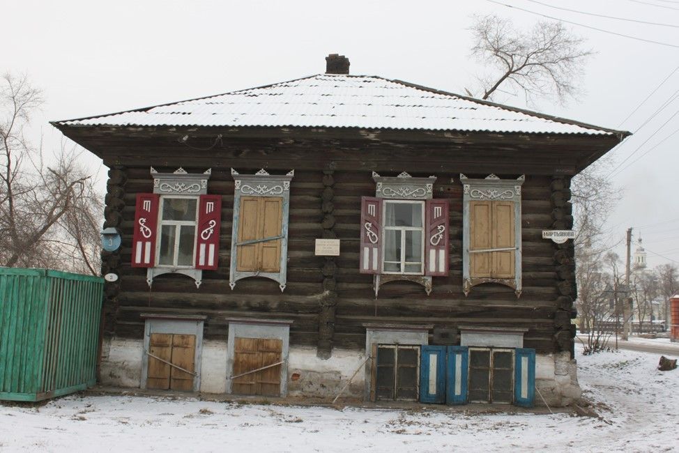 1. Градостроительные характеристики1.1. Местоположение объекта в системе городской застройкиОбъект расположен в историческом центре города Минусинска, на пересечении улиц Мартьянова и Красных Партизан, в ряду исторической застройки.1.2. Композиционная значимостьЭлемент исторической застройки центра г. Минусинска. Формирует восточный угол квартала, ограниченного улицами Красных Партизан, Мартьянова, Набережная, Комсомольская.1.3. Габариты и силуэт:габариты здания и высотные отметки здания на дату строительства (1925 г.).1.4. Секторы и направления видовых раскрытий, визуальные связи памятникаВидовые раскрытия и восприятие объекта с улицы Мартьянова на участке от ее пересечения с ул. Набережной до места ее пересечения с ул. Красных Партизан, с улицы Красных Партизан от площади III Интернационала до места ее пересечения с ул. Кравченко.2. Архитектурные и конструктивные характеристики2.1. Объемно-пространственная композиция на 1925 г.Одноэтажный бревенчатый дом на каменном подклете. Основной объем квадратный в плане, с северо-запада выполнен прируб с капитальными сенями. С северо-западной стороны прируба поздние дощатые пристройки предметом охраны не являются.2.2. Конструкция крыши на 1925 г.Крыша основного объема вальмовая с кровлей по деревянным стропилам и обрешетке, крыша сеней односкатная с кровлей по деревянным стропилам и обрешетке.2.3. Композиция и архитектурно-художественное оформление фасадов на 1925 г.2.3.1. Юго-восточный фасадКомпозиция фасадаФасад симметричный, в уровне подклета и основного этажа решен в 4 оси оконных проемов.Фасад разделен перерубом на две 2-осные части.Фасад завершен большого выноса карнизом.Широкий фриз закрывает два верхних венца сруба.Декоративное оформление фасада:наличники окон основного этажа с высокой, украшенной накладной резьбой, лобанью, завершенной прямым карнизом, над которым трехчастное резное навершие, с боковинами, украшенными сверху резными накладками, с фартуком, имеющим снизу лучковый вырез и свесы в форме сердечка;наличники окон подклета с высокой лобанью, завершенной прямым карнизом;профилированный фриз;простой тесовый карниз.2.3.2. Северо-восточный фасадКомпозиция фасадаФасад основного объема в уровне подклета решен в одну оконную ось, в уровне основного этажа решен в 3 оси оконных проемов.Фасад прируба в уровне основного этажа решен в одну оконную ось. Оконный проем по ширине больше других проемов фасада.Фасад основного объема разделен перерубом на две части: одну 2-осную и одну 1-осную.Фасад основного объема завершен большого выноса карнизом.Широкий фриз основного объема закрывает два верхних венца сруба.Декоративное оформление фасада:наличники окон основного объема в уровне верхнего этажа с высокой, украшенной накладной резьбой, лобанью, завершенной прямым карнизом, над которым трехчастное резное навершие, с боковинами, украшенными сверху резными накладками, с фартуком, имеющим снизу лучковый вырез и свесы в форме сердечка;наличники окон подклета с высокой лобанью, завершенной прямым карнизом;наличник окна прируба с невысокой лобанью, завершенной прямым карнизом;профилированный фриз;простой тесовый карниз.2.3.3. Юго-западный фасадКомпозиция фасадаФасад основного объема в уровне подклета решен в 2 оконных оси, в уровне основного этажа решен в 3 оси оконных проемов. Оконный