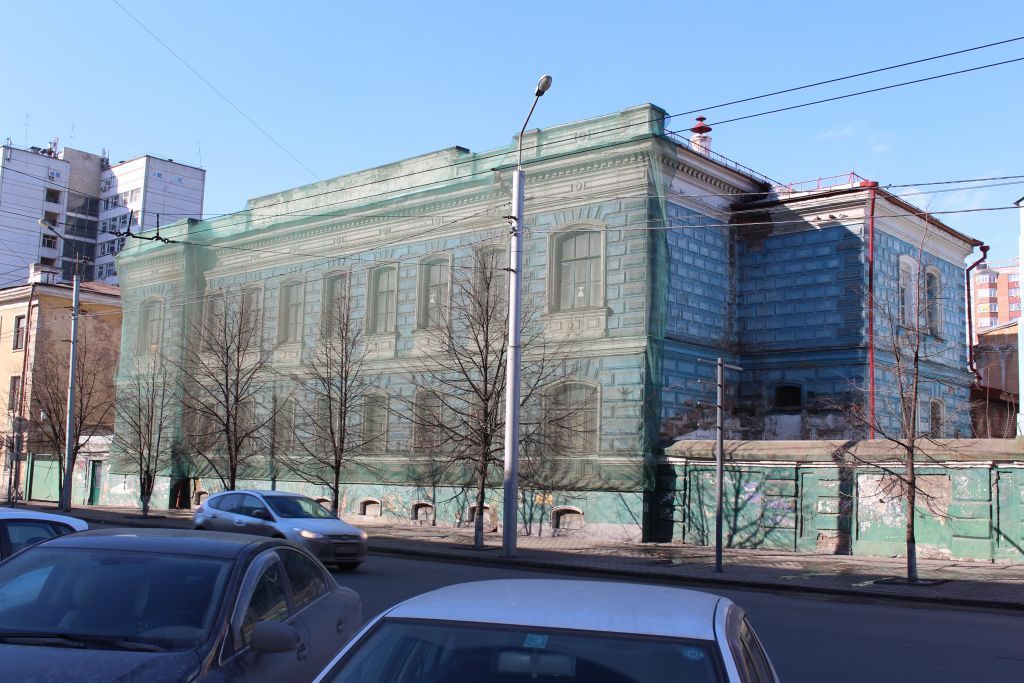 1.Местоположение, роль и градостроительные характеристики зданияЗдание расположено в историческом центре города, в границах квартала, образованного пересечением ул. Карла Маркса, ул. Парижской Коммуны, ул. Сурикова, пр. Мира. Главным (южным) фасадом, решённым в 9 осей, здание обращено на ул. Карла Маркса. Здание с примыкающей с двух сторон оградой и воротами, расположенными с западной стороны, формирует линию застройки улицы.2. Объёмно-пространственная композиция здания на конец XIX в.Кирпичное двухэтажное, с цокольным этажом, прямоугольное в плане здание под вальмовой крышей, покрытой кровельным железом. К центральной части здания с западной и восточной сторон примыкают лестничные объёмы, к которым выполнены небольшие пониженные пристройки. Главный вход расположен в западном ризалите на южном фасаде здания. Два «чёрных» входа расположены с северной стороны лестничных объёмов. 3. Внутренняя планировкаПланировочная структура здания симметричная, пятичастная. Центральная часть с коридорами вдоль центральной продольной стены, большим парадным южным залом на втором этаже и кабинетами вдоль коридоров заключена между лестничными объёмами. К основному объёму здания с западной и восточной сторон примыкают небольшие помещения пристроек.4. Условия зрительного восприятияРаскрытие здания с участка ул. Карла Маркса, ограниченного ул. Сурикова и ул. Парижской Коммуны.5. Южный фасад5.1. Композиция южного фасада на конец XIX в.Симметричный фасад основного объёма решён в 9 осей проёмов лучковой формы. На первом этаже одна дверная ось и 8 оконных осей, на втором этаже 9 оконных осей, на цокольном этаже 8 оконных осей. Центральную часть фасада фланкируют два одноосных ризалита, акцентирующих расположение лестниц, с более широкими окнами. Фасады пристроек глухие. Широкие тяги – междуэтажная и подоконная на первом этаже расчленяют фасад на 3 яруса. Дверной проём акцентирован металлическим двухскатным козырьком на ажурных металлических кронштейнах. Цокольная часть фасада с двух сторон продолжена каменной оградой. В западной части ограды – проём ворот. Фасад основного объёма завершён парапетом. 5.2. Декор южного фасада на конец XIX в.:широкие многообломные тяги, проходящие под окнами первого этажа и между этажами;профильный пояс, декорированный прямоугольными четырёхгранными камнями, проходящий по верху цоколя;плоскости стен первого и второго этажей, декорированные филёнчатым рустованным камнем, веерным над лучковыми проёмами окон;камни руста, обрамляющие углы ризалитов и пристроек на ярусе второго этажа, с отделкой «под шубу»;подоконные пространства на втором этаже, оформленные в виде постаментов с широкими простыми базами и многообломными подоконными карнизами, декорированными прямоугольными филёнками – тремя под широкими окнами ризалитов и двумя под другими окнами;подоконное пространство под неширокой подоконной тягой на первом этаже восточного ризалита, раскрепованное на три ниши, заполненные филёнками;среднего выноса профилированный карниз над широким фризом, декорированным «сухариками» и украшенным лепными вытянутыми прямоугольными филёнками, разделёнными круглыми вставками, завершающий основной объём здания;парапет с повышенной центральной частью, расчленённый тумбами с декоративными филёнками, аналогичными филёнка