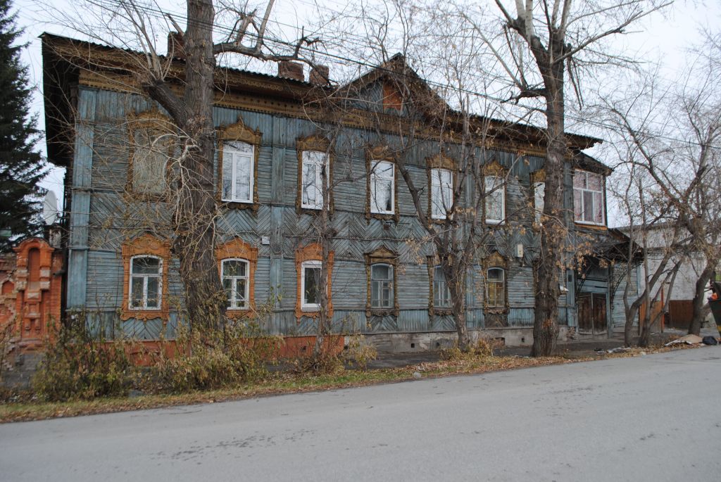 1. Градостроительные характеристики 1.1. Местоположение, роль и градостроительные характеристики объектаОбъект расположен в исторической части г. Ачинска, в границах квартала, ограниченного ул. Партизанской, ул. Дзержинского, ул. Ленина и ул. Воеводы Тухачевского, выходит юго-восточным фасадом в линию застройки ул. Партизанской.1.2. Композиционная значимостьВажный элемент комплекса исторической застройки центра города.1.3. Габариты и силуэтГабариты и высотные отметки здания на рубеж ХIХ–ХХ веков.1.4. Секторы и направления видовых раскрытий, визуальные связи объектаПреимущественное раскрытие объекта с прилегающей дворовой территории и с ул. Партизанской, на участке от перекрестка с ул. Дзержинского до середины отрезка ул. Партизанской, формирующего юго-восточную границу квартала. 2. Архитектурные и конструктивные характеристики объекта2.1. Объемно-пространственная композиция объектаДвухэтажный с подвалом дом. С северо-восточной стороны к основному, прямоугольному в плане, объему примыкает двухэтажная деревянная пристройка с ризалитом в средней части.2.2. Конструкция крыши на рубеж ХIХ–ХХ вековКрыша основного объема вальмовая, по деревянным конструкциям. Крыша пристройки односкатная, бесчердачная. 2.3. Композиция и архитектурно-художественное оформление фасадов на рубеж ХIХ–ХХ веков2.3.1. Юго-восточный фасадКомпозиция фасада Фасад симметричного основного объема решен в семь осей оконных проемов подвала, первого и второго этажей с лучковым завершением, разделен внутренними лопатками на три прясла (центральное прясло трехосное, боковые – двухосные), завершен карнизом большого выноса с широким дощатым фризом. С правой стороны фасад удлинен объемом пристройки в одну ось смежных дверных проемов парадного входа в уровне первого этажа и одну ось сплошного остекления веранды в уровне второго этажа.Углы фасада обработаны лопатками.Вход оборудован козырьком с лучковой кровлей на кованных кронштейнах.Центральное прясло акцентировано треугольным фронтоном.Кирпичный цоколь выделен уступом с покрывной доской.Высотные отметки фасада до конька крыши.Декоративное оформление фасада:подзор карниза пропильной резьбы геометрического рисунка;пропильная резьба геометрического рисунка в оформлении фриза; филенки лопаток; обрамление окон подвала в виде плоского пояса;наличники оконных проемов (профилированный сандрик сложного очертания с килевидным верхом завершен по краям точеными фигурками «берегинь»; лобань украшена объемной резьбой в виде занавесей с тремя кистями; по бокам лобани распложены резные раскрепованные колонны, опирающиеся по краям на пропильные кронштейны (такие же, только зеркально перевернутые «кронштейны» расположены по бокам нижней части боковин, опирающиеся на криволинейные выступы фартука); фартук наличника с криволинейным краем волютообразных очертаний декорирован накладными элементами пропильной резьбы растительного рисунка и в качестве опусков имеет три перевернутые точеные фигурки «берегинь», аналогичные фигуркам, украшающим сандрик).2.3.2. Северо-восточный фасадКомпозиция фасадаПо центру фасада выступает объем ризалита пристройки с двумя осями разновеликих прямоугольных «лежачих» окон в уровне второго этажа и одним небольшим прямоугольным окном в уровне первого этажа. Левая от ризалита ч