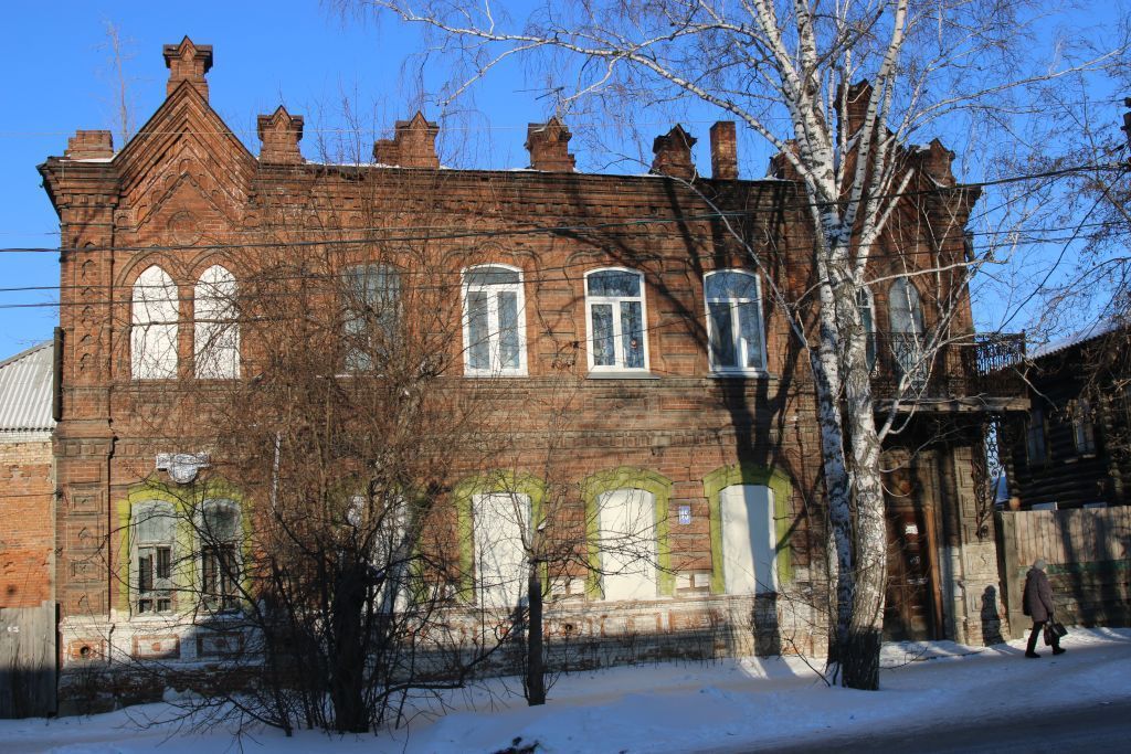 1. Местоположение в системе городской застройкиЗдание расположено в исторической части города Ачинска, в квартале, ограниченном ул. Воеводы Тухачевского, ул. Партизанской, ул. Щетинкина и ул. Красного Октября, нa ул. Воеводы Тухачевского, выходя главным (юго-западным) фасадом на ее восточную линию застройки.2. Условия зрительного восприятияПреимущественное восприятие здания с участка ул. Воеводы Тухачевского, ограниченного ул. Партизанской и ул. Красного Октября.3. Объемно-пространственная композицияОсновной объем здания двухэтажный, под вальмовой крышей. К нему примыкает двухэтажная каменно-деревянная прямоугольная в плане пристройка под односкатной крышей, занимающая левую половину северо-восточного фасада. 4. ПланировкаПоперечной стеной каждый этаж разделен на две части. Парадный вход на первый этаж расположен на шестой оси юго-западного фасада, дворовой вход с межэтажной лестницей – в пристройке.5. Юго-западный фасад на кон. XIX в.5.1. Композиция фасадаФасад симметричный, решен шесть осей проемов, разделен угловыми и рядными двухъярусными пилястрами на три прясла. Боковые прясла одноосные‚ акцентированы треугольными щипцами. На шестой оси расположен парадный вход на первый этаж и выход на балкон, остальные проемы фасада оконные. Окна левого прясла и проемы правого прясла в уровне второго этажа – сдвоенные.Оконные проемы боковых прясел в уровне второго этажа и проем выхода на балкон – стрельчатые, остальные проемы имеют лучковые перемычки.Фасад завершен профилированным карнизом небольшого выноса, над которым в уровне крыши по осям простенков окон расположены прямоугольные тумбы с треугольными подвышениями и постаментами, служащие частью ограждения парапета (решетки ограждения парапета утрачены). Такие же тумбы – в завершении щипцов.Межэтажное членение выполнено в виде широкого пояса. Цоколь выделен уступом.Высотные отметки фасада до конька крыши.5.2. Декоративное оформление фасада:фриз, состоящий из двух поясов сухариков (сверху и снизу) и аркатурного пояса (посередине), разделенных тягами-валиками, проходящий по всему фасаду и повторяющий абрис щипцов;карниз, полуколонны по флангам и горизонтальные валики парапетных тумб и тумб щипцов;круглая рамка по центру поля щипцов;верхняя и нижняя профилированные тяги межэтажного пояса;ряд зубцов под нижней тягой межэтажного пояса;ряд филенок с керамическими квадрифолийными вставками по центру, расположенных по осям оконных проемов, чередующихся с желобчатыми квадрами, расположенными по осям простенков окон центрального прясла в поле межэтажного пояса;профилированная подоконная тяга и ряд филенок с керамическими круглыми вставками по центру (по осям оконных проемов), чередующихся с желобчатыми квадрами (по осям простенков окон центрального прясла) под окнами первого этажа;полуколонны пилястр с перехватами в уровне второго этажа, обработанные фигурными впадинами;желобчатые квадры пилястр, украшенные фигурными впадинами, в уровне первого этажа;обрамления окон второго этажа центрального прясла в виде профилированных криволинейных поясков с «ушами», завершенные профилированными криволинейными сандриками;обрамления окон боковых прясел в виде колончатых наличников (колонны имеют перехваты, капители и базы в виде огрубленных кубышек) c мелкопрофилированным 