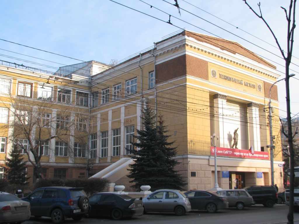 1. Местоположение, роль и градостроительные характеристики зданияЗдание расположено в историческом центре города, занимает южную часть квартала, образованного улицами Вейнбаума, Перенсона, Ленина и проспектом Мира. 2. Объёмно-пространственная композиция зданияКрупное четырёхэтажное с полуподвалом здание, Ж-образное в плане, состоит из сильно выступающего к югу и северу центрального корпуса и протяжённых боковых крыльев, каждое из которых членится на три объёма.Усложнённая композиция крупных объёмов, укрупнённый масштаб, продуманная технология функционирования учебного процесса, простота архитектурного облика данного здания являются характерными чертами, присущими стилю «конструктивизм». В сороковые годы здание было оштукатурено и получило неоклассический декор. Основу композиции составляют продольные и поперечные стены, а также шаг колонн, позволивший сформировать планировку коридорного типа с большими помещениями учебно-лекционного, лабораторного, административного назначения. 3. Южный фасад3.1. Композиция фасада на 1940-е гг.Фасад симметричный, решён в пятьдесят оконных осей. Главный вход утоплен между массивными пилонами, несущими сдвоенные колонны-столбы огромной лоджии, в центре которой на небольшом пьедестале находится скульптура В.И. Ленина.Открытые боковые двухмаршевые лестницы, ведущие на уровень лоджии.Верхняя часть центрального корпуса прямоугольной формы, перекрытие плоское.Угловые корпуса перекрыты двухскатными пологими кровлями, углы которых прикрывают невысокие парапеты и тумбы с секциями металлических ограждений простого рисунка.Форма, местоположение и размер оконных проёмов.3.2. Декоративное оформление фасада на 1940-е гг.:боковые пилоны лоджии центрального корпуса оштукатурены под руст, первый этаж – под руст с фактурой «под шубу»;карниз простой формы с сухариками и парапетной стенкой по периметру центрального объёма корпуса;надпись «технологический институт» в горизонтальной нише, обрамлённой филёнкой простой формы, с рельефом герба по бокам; декоративные пояски по горизонтали сверху и снизу от надписи;стены угловых корпусов оштукатурены под руст, первый этаж – под руст с фактурой «под шубу»;расстекловка оконных заполнений;окна на всех этажах однотипные, почти квадратные;простенки между окнами отмечены плоскими пилястрами в два этажа;пилястры по горизонтали ограничены простым межэтажным карнизом первого этажа и декоративным пояском в уровне третьего и четвёртого этажей;окна четвёртого этажа обрамлены наличниками рамочного типа и выделены декоративными поясками сверху и снизу;венчающий карниз простой формы;два трёхрожковых фонаря, расположенных на тумбах, фланкирующих главный вход южного фасада.4. Восточный фасад центрального корпуса 4.1. Композиция фасада на 1940-е гг.Фасад асимметричный, решён в пять оконных осей.Открытые боковые двухмаршевые лестницы, ведущие на уровень лоджии.Пять крупноформатных окон бокового фасада центрального корпуса. Форма, местоположение и размер оконных проёмов.4.2. Декоративное оформление фасада на 1940-е гг.:стены центрального корпуса оштукатурены под руст, первый этаж – под руст с фактурой «под шубу»;расстекловка оконных заполнений;простенки между окнами отмечены плоскими пилястрами в два этажа;пилястры по горизонтали ограничены простым межэт