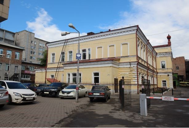 1. Градостроительные характеристики1.1. Местоположение объекта:расположен в историческом центре, внутри квартала, образованного пересечением улиц Диктатуры Пролетариата, Ленина, Кирова и пр. Мира.1.2. Композиционная значимость:важный элемент исторической застройки квартала.1.3. Габариты и силуэт:габариты и высотные отметки здания до конька кровли на конец XIX в.1.4. Секторы и направления видовых раскрытий, визуальные связи памятникаОбъект полностью закрыт окружающей застройкой, находится внутри квартала. Выстроенный в непосредственной близости протяженный трехэтажный корпус доходного дома, отгородил здание от главной улицы, к которой первоначально оно было обращено южным фасадом.2. Архитектурные и конструктивные характеристики2.1. Объемно-пространственная композиция на кон. XIX в.Двухэтажное здание, симметричное, прямоугольное в плане, вытянутое с востока на запад, с сильно выступающими посредине северного и южного фасадов трехосными ризалитами. С севера и запада примыкают 3 небольшие пониженные пристройки. Двухсветный зал (бывшая Домовая церковь) расположен на втором этаже, второй ярус окон зала расположен в объеме, поднятом над крышей корпуса.2.2. Конструкция крыши на кон. XIX в.:крыша основного объема вальмовая с металлической кровлей по деревянным стропилам и обрешетке, над южным ризалитом – двухскатная.2.3. Композиция и архитектурно-художественное оформление фасадов на кон. XIX в.2.3.1. Южный фасадКомпозиция фасада:фасад симметричный, решен в уровне второго этажа в 21 оконную ось, в уровне первого этажа – в 19 осей, центральная из которых – дверной проем основного входа;композиционно разбит на 3 части с трехосным центральным ризалитом, и девятиосными боковыми участками; в уровне первого этажа ризалит решен в одну ось дверного проема;в широких простенках второго этажа и на углах – пилястры;второй этаж ризалита прорезан тремя высокими проемами с полуциркульными завершениями;в прямоугольный аттик, охватывающий и боковые стороны ризалита, встроена звонница, увенчанная луковичной главкой;во втором этаже 9-осных боковых участков фасада окна расположены в прямоугольных нишах;над главным входом в здание имеется козырек на ажурных металлических кронштейнах;венчающий и междуэтажный карнизы и подоконные тяги делят этажи по горизонтали;размер и форма окон.Декор фасада:рустовка первого этажа фасада;профилированные наличники окон с лучковыми завершениями;профилированные многообломные венчающий и междуэтажный карнизы и подоконные тяги; венчающий карниз поддерживают фигурные кронштейны; междуэтажный карниз с кровелькой;большой проем «звона» с полуциркульным завершением обрамлен рустованным архивольтом;подоконные филенки и профилированные сандрики с полуциркульным подвышением окон второго этажа, расположенных в прямоугольных нишах 9-осных боковых участков фасада.2.3.2. Западный фасадКомпозиция фасада:фасад решен в уровне второго этажа в 7 оконных осей, центральное из которых строенное, в уровне первого этажа – в 4 оконных оси (2 основного объема и 2 пристройки), крайняя к северу ось пристройки представлена строенным окном;ризалиты решены в одну оконную ось каждый;венчающий и междуэтажный карнизы и подоконные тяги делят этажи по горизонтали;часть проемов второго этажа ложные;размер и форма окон.Декор фасада:профилированные 
