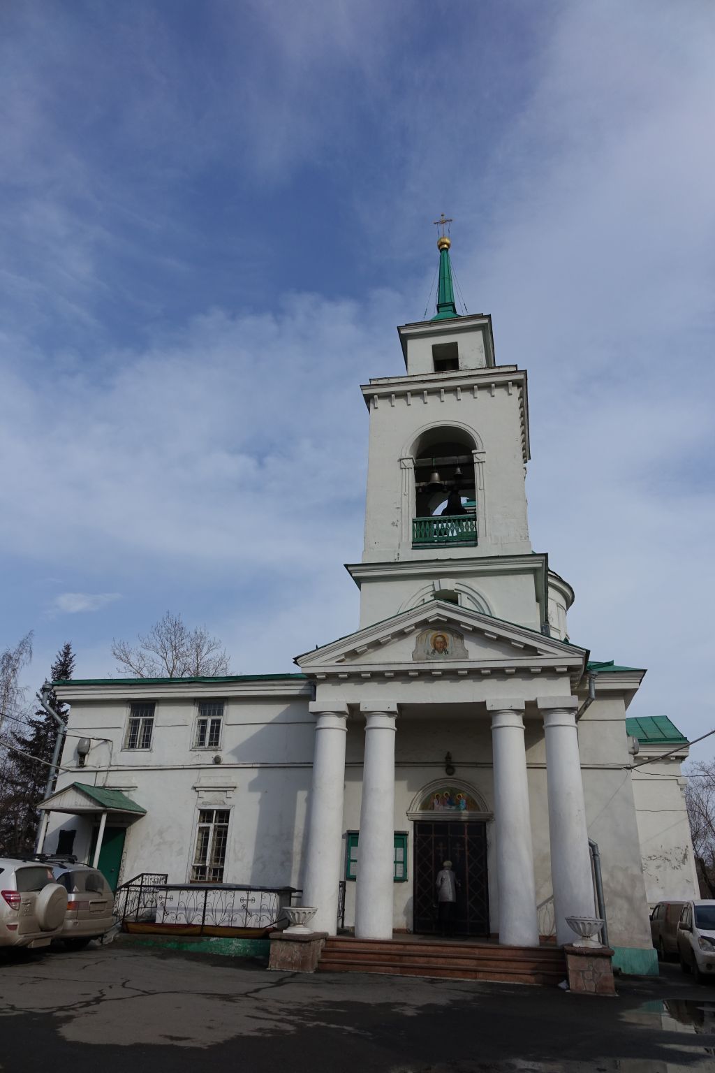 1. Местоположение, роль и градостроительные характеристики1.1. Местоположение объекта в системе городской застройки Здание расположено в северо-западной части города Красноярска, на территории Троицкого кладбища.1.2. Композиционная значимость Памятник является композиционным ядром комплекса Троицкого кладбища и важной градостроительной доминантой городского ландшафта.1.3. Габариты и силуэтГабариты здания по оси север-юг 19 м, по оси восток-запад 24,20 м. Высотные отметки здания до конька кровли на дату строительства (1842 г.).1.4. Секторы и направления видовых раскрытий, визуальные связи памятникаРаскрытие памятника и панорамное восприятие с юго-восточного, южного и юго-западного секторов обзора с территории исторического центра Красноярска, с северо-запада и запада с ул. Игарская. 2. Архитектурные и конструктивные характеристики 2.1. Объёмно-пространственная композиция на 1842 г. Здание церкви в формах классицизма с вытянутым вдоль всего здания приделом на месте северного рукава креста. Кубический храм с полукруглой двухоконной апсидой завершён массивным, в 8 осей световым барабаном с плоским перекрытием и сферической формы покрытием с коротким шпилем на четырёхгранной невысокой тумбе. Примыкающая с запада высокая четырёхгранная колокольня завершена шпилем. Апсида, шпили храма и колокольни завершены небольшими главками с металлическими крестами. 2.2. Конструкция крыши на 1842 г. Крыша имеет сложную конфигурацию. Кровли элементов крыши выполнены из листового железа под окраску. Стропильная система и обрешётка деревянные.2.3. Композиция и архитектурно-художественное оформление фасадов на дату строительства (1842 г.)2.3.1. Западный фасад на 1842 г.Композиция фасадаКомпозиция фасада состоит из четырёхъярусного объёма колокольни и примыкающего к ней с севера объёма тёплого придельного храма.Фасад придела решён по первому ярусу в одну ось дверного проёма (северная ось) и одну ось оконного проёма, по второму ярусу – в две оси оконных проёмов. Фасад колокольни решён в одну ось с расположенным на первом ярусе дверным проёмом. Нижний ярус колокольни оформлен портиком из четырёх сгруппированных попарно колонн тосканского ордера с треугольным фронтоном. Второй, низкий ярус колокольни прорезан небольшим оконным проёмом. Вертикально вытянутый ярус звона колокольни прорезан крупной полуциркульной аркой.Невысокий четвёртый ярус колокольни имеет прямоугольный проём и завершён четырёхскатной пирамидальной крышей со слегка вогнутыми рёбрами и невысоким гранёным шпилем с крестом на крупном яблоке.Декор западного фасада:наличник в виде прямоугольной рамы простого профиля и сандрик в виде прямоугольной полки, наложенной на прямоугольный выступ с приспущенными нижними углами над оконным проёмом первого яруса придела;сандрик в виде прямоугольной полки, наложенной на прямоугольный выступ с приспущенными нижними углами над дверным проёмом первого яруса придела;профилированный архивольт над дверным проёмом колокольни;профилированный архивольт с веерным замковым камнем вокруг оконного проёма во втором ярусе колокольни;профилированный архивольт с импостами в виде уплощённых «кубышек», украшенных сердцевидным мотивом и вертикальным элементом – «маятником», вокруг крупной полуциркульной арки яруса звона колокольни;девять узких кроншт