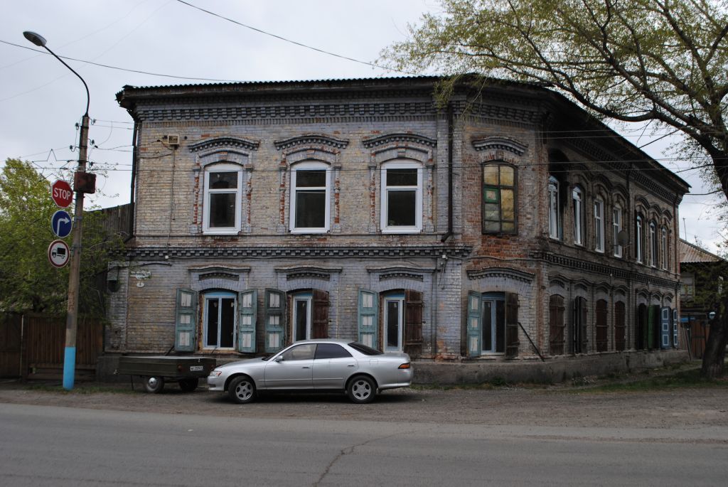 1. Градостроительные характеристики1.1. Местоположение объекта в системе городской застройки:расположен в историческом центре, на месте пересечения съезда с моста через Минусинскую протоку (улица Комсомольская) с планировочной связкой Театральной и Соборной площадей.1.2. Композиционная значимость: важный элемент комплекса исторической застройки центра города.1.3. Габариты и силуэт: габариты и высотные отметки здания до конька кровли на конец ХIХ в.1.4. Секторы и направления видовых раскрытий, визуальные связи памятника: раскрывается с перекрестка улиц Комсомольская и Подсинская.2. Архитектурные и конструктивные характеристики:2.1. Объемно-пространственная композиция на конец ХIХ в.Двухэтажный дом с двухэтажным (ныне утраченным) тамбуром-сенями. Объемное решение здания (со срезанным углом) характерно для углового типа объемно-планировочной композиции постройки периода эклектики. Объемно-планировочное решение полностью подчинено конфигурации углового построения здания: угол квартала на плане тупой, все три плоскости главных фасадов здания – два уличных фасада и срезанный угол между ними образуют плавную развертку.2.2. Конструкция крыши на конец ХIХ в.:крыша вальмовая с металлической кровлей по деревянным конструкциям. 2.3. Композиция и архитектурно-художественное оформление фасадов на конец ХIХ в.2.3.1. Северный фасадКомпозиция северного фасадаФасад решен в три оси.Форма, местоположение и размер проемов.Декор северного фасада:фриз, включающий в себя: двухрядный прямой зубец в шахматном порядке, трехступенчатый зубец, стоячий поребрик;межэтажный пояс с двухрядным прямым зубцом в шахматном порядке;лопатки, опирающиеся на цоколь, по которым раскрепованы фриз и межэтажный пояс;оконные проемы первого этажа лучкового завершения, обрамлены массивными плоскими наличниками с профилированными сандриками (дополненными рядом сухариков) повторяющими изогнутый силуэт завершения оконного проема; между кирпичной перемычкой и сандриком – ниша;оконные проемы второго этажа также имеют лучковые завершения и обрамлены наличниками, представляющие полувал в сечении; стойки наличников решены как полуколонки с капителями, базами и импостами; над ними – изогнутые сандрики, повторяющие форму завершений проемов, украшенные рядом сухариков.2.3.2. Северо-западный фасадКомпозиция северо-западного фасадаФасад решен в одну ось.Форма, местоположение и первоначальный размер проемов.Балкон второго этажа (ныне утрачен).Декор северо-западного фасада:небольшого выноса карниз;фриз, включающий в себя: двухрядный прямой зубец в шахматном порядке, трехступенчатый зубец, стоячий поребрик;оконный проем первого этажа лучкового завершения, обрамлен массивным плоским наличником с профилированным сандриком, повторяющими изогнутый силуэт завершения оконного проема, украшенным рядом сухариков; над проемом второго этажа (первоначально – выход на балкон) – изогнутый сандрик, повторяющий форму завершения проема, украшенный рядом сухариков.2.3.3. Западный фасадКомпозиция западного фасадаПервоначальная композиция в семь оконных осей, разделенных вертикально лопатками на участки в три и четыре оконные оси, с примыкающей (ныне утраченной) частью – западным фасадом двухэтажного тамбура-сеней в одну ось.Форма, местоположение и размер проемов.Декор западного 