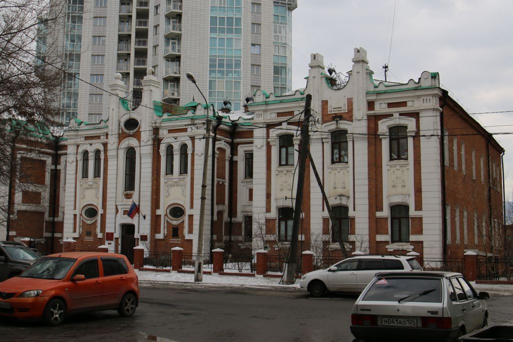 1. Местоположение, роль и градостроительные характеристики зданияЗдание расположено в историческом центре города на южной сторонеул. Ломоносова, западнее её пересечения с ул. Декабристов, и обращено на улицу главным северным фасадом.2. Объёмно-пространственная композиция зданияКирпичное двухэтажное с подвалом здание.Развитая симметричная объёмно-пространственная композиция здания создана тремя трёхосными ризалитами главного фасада, боковые из них большего выноса, которым соответствуют ризалиты дворовой части: восточный и едва выступающий западный.Крыша вальмовая с металлической кровлей.В среднем ризалите главного фасада расположена лестница, образующая вместе с пересечённым четырьмя арками участком коридора объём вестибюля.Продольный коридор, связывающий крупные помещения, освещён большими окнами западающих участков фасада.«Чёрная» лестница расположена в восточном крыле.Две поперечные стены соответствуют ризалитам, две другие вычленяют небольшое помещение перед парадной лестницей.Оштукатуренные детали фасада выделены на фоне лицевой кирпичной кладки плоскости стены светлой краской.Дворовые фасады выполнены лицевой кирпичной кладкой. Цоколь из каменных плит.3. Северный фасад3.1. Композиция северного фасада на нач. XX в.Симметричен, решён в 11 оконных осей.Сформирован тремя 3-осными ризалитами и одноосными западающими частями фасада, расположенными между ризалитами.Главный вход соответствует средней оси центрального ризалита.Форма, местоположение и размер оконных проёмов.3.2. Декор северного фасада на нач. XX в.Рустованные лопатки углов ризалитов с фигурными накладками под филёнчатым фризом, которые завершены в аттике полуциркульного очертания тумбами.Лопатки, выделяющие центральную ось ризалитов, образующие фигурные тумбы аттиков седловидного очертания.Вогнутые части аттиков заполнены металлической решёткой.Аттик среднего ризалита с горизонтальным овальным проёмом окна. Тумбы с шарообразными завершениями.Цоколь облицован блоками из сиенита.Крупные профилированные наличники окон.Декоративные элементы геометрического и растительного рисунка в образованном между окнами оштукатуренном участке стены.Нижние окна ризалитов объединены с лопатками двумя плоскими горизонтальными тягами.Полочка на плоских кронштейнах под окнами боковых ризалитов.В оштукатуренных участках стен под ленточными окнами второго этажа западающих участков фасада находятся филёнки, поле которых выполнено лицевой кирпичной кладкой.Ложные окна боковых стен ризалитов.4. Западный фасад4.1. Композиция западного фасада на нач. XX в.Решён в 5 оконных осей.Форма, местоположение и размер оконных проёмов.4.2. Декор западного фасада на нач. XX в.Поле стен, выполненное лицевой кирпичной кладкой.Лучковые перемычки оконных проёмов.Карниз простого профиля.5. Восточный фасад5.1. Композиция восточного фасада на нач. XX в.Решён в 6 оконных осей (восточный фасад западного дворового ризалита решён в одну оконную ось).Форма, местоположение и размер оконных проёмов.5.2. Декор восточного фасада на нач. XX в.Поле стен, выполненное лицевой кирпичной кладкой.Лучковые перемычки оконных проёмов.Карниз простого профиля.6. Северный фасад6.1. Композиция северного фасада на нач. XX в.Решён в 12 осей, 3 оси соответствуют восточному ризалиту.Форма, местоположение и раз