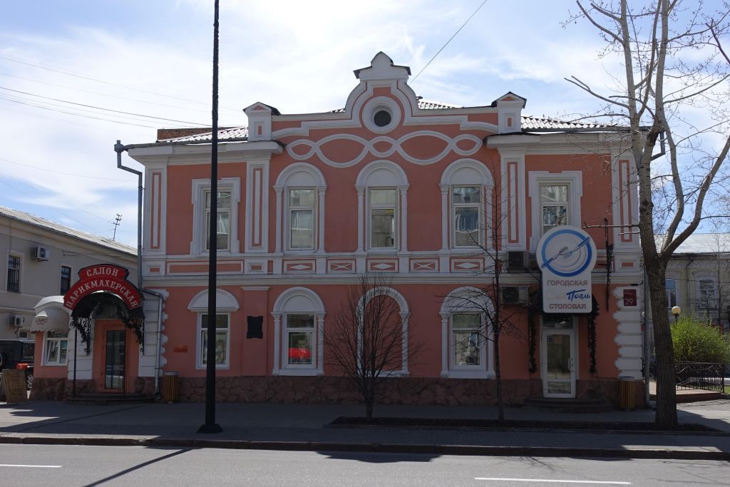 1. Местоположение, роль и градостроительные характеристики зданияДом расположен в историческом центре Красноярска, входит в комплекс застройки бывшей Владимирской площади, образованной пересечением пр. Мира и ул. Парижской Коммуны.2. Объёмно-пространственная композиция здания на нач. ХIХ в.Двухэтажный с подвалом кирпичный дом, прямоугольный в плане. Крыша четырёхскатная вальмовая. Главный вход в здание расположен на северном фасаде.На первом и втором этажах здания две поперечные капитальные стены делят его на три части, в средней из которых двумя продольными стенами вычленен центральный коридор, не имеющий оконных проёмов. Поздними стенами и перегородками каждое из помещений расчленено на более мелкие помещения. Лестница расположена в юго-восточном угловом помещении здания.В подвальном этаже поперечная и продольная капитальные стены вычленяют четыре равных по площади квадратных одностолпных помещения, связанных анфиладно. Лестница в подвал устроена в его юго- восточной части.3. Восточный фасад3.1. Композиция восточного фасада на нач. ХIХ в.Восточный фасад решён в 6 осей оконных проёмов второго этажа, в6 осей проёмов первого этажа, крайние из которых являются дверными проёмами (северный проём закрыт одноэтажной пристройкой).Форма, местоположение и размер проёмов.3.2. Декор восточного фасада на нач. ХIХ в.Оконные обрамления в виде профилированной плоской рамы «ушастого» типа.Оконные обрамления в виде профилированной рамы с лучковым завершением.Филёнчатые лопатки второго этажа.Широкий междуэтажный пояс с чередующимися между двумя тягами горизонтально уложенными прямоугольными филёнками, расположенными под окнами второго этажа.Венчающий карниз простого профиля.4. Южный фасад4.1. Композиция южного фасада на нач. ХIХ в.Южный фасад решён в 3 оси оконных проёмов второго этажа, в 5 осей проёмов первого этажа, из которых 2-ю ось от западного угла занимает дверной проём.Форма, местоположение и размер проёмов.4.2. Декор южного фасада на нач. ХIХ в.Обрамление западного окна второго этажа в виде профилированной рамы с лучковым завершением.Венчающий карниз простого профиля.5. Западный фасад5.1. Композиция западного фасада на нач. ХIХ в.Западный фасад, завершённый фигурным щипцом, решён в 7 осей оконных проёмов второго этажа (включая один заложенный), в 6 осей оконных проёмов первого этажа (включая 2 заложенных) и дополнен 7-й осью дверного проёма с юга.Форма, местоположение и размер проёмов.5.2. Декор западного фасада на нач. ХIХ в.Фигурный трёхчастный щипец с круглым проёмом, обрамлённым профилированной рамой. Щипец фланкируют прямоугольной формы тумбы, завершённые фронтончиками, поле тумб украшено филёнками.Оконные обрамления в виде профилированного архивольта на полукруглых каннелированных колонках, завершённых стилизованными капителями.Оконные обрамления в виде профилированной плоской рамы «ушастого» типа.Филёнчатые лопатки второго этажа.Гладкие лопатки первого этажа, вычленяющие 3 оконных проёма, соответствующих щипцовому завершению.Фигурный вертикальный руст угловых лопаток первого этажа.Широкий междуэтажный пояс состоит из горизонтальных тяг, между которыми размещены плоские прямоугольные пьедесталы, соответствующие осям колонок окон второго этажа, и филёнки, соответствующие осям пилястр. Между пьедесталами по осям око