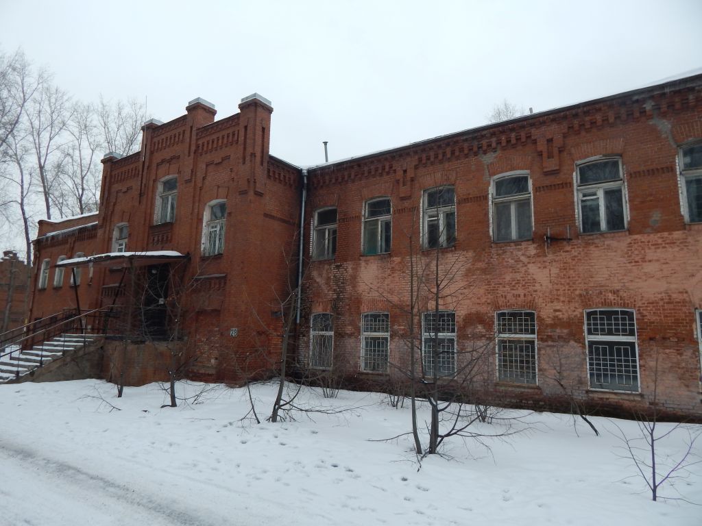1. Местоположение здания в системе исторической застройки городаЗдание расположено в центральной части бывшего военного городка (ныне микрорайон Авиатор) города Ачинска.2. Объемно-пространственная композиция зданияДвухэтажное прямоугольное в плане здание, протяженное с северо-востока на юго-запад, со ступенчатыми щипцовыми торцами и выступающим ризалитом по центру северо-западного фасада. Объем здания от торца до торца завершен двухскатной крышей, в северо-западный скат которой врезан двухскатный участок крыши ризалита.Высотные отметки здания до конька крыши.3. ПланировкаПланировочная схема коридорная. Несколькими поперечными стенами в центральной части северо-западной половины здания выделена выступающая входная группа с лестничной клеткой, расположенной по центру (напротив главного входа).4. Условия зрительного восприятияРаскрытие и круговое восприятие здания с прилегающей территории.5. Колористическое решение, характер отделки фасадной поверхностиФасады лицевой кирпичной кладки из натурального красного кирпича (без окраски).6. Северо-западный фасад на 1917 г.6.1. Композиция фасадаФасад симметричный, решен в пятнадцать осей проемов с лучковыми завершениями (центральный проем в уровне первого этажа дверной, остальные проемы оконные, первой и пятой осям первого этажа соответствуют ложные оконные проемы).Центр фасада акцентирован трехосным ризалитом большого выноса, завершенным ступенчатым щипцом с повышенной средней ступенью.Углы фасада, включая углы ризалита, а также простенки ризалита, обработаны широкими лопатками.Оси ризалита обработаны фигурными впадинами со ступенчатым завершением.Цоколь выделен уступом.6.2. Декор фасада:фриз, включающий в себя метрический ряд сухариков под карнизом малого выноса (на фасаде ризалита ряд сухариков выделен общим выступом) и метрический ряд машикулей;фигурные ступенчатые, расширяющиеся кверху, накладки с узкими нишами посередине, расположенные в верхней части фасада по осям лопаток, а также между осями второй и третьей, четвертой и пятой, одиннадцатой и двенадцатой, тринадцатой и четырнадцатой;поребриковый пояс, проходящий в простенках всех проемов (за исключением центральной оси) в уровне горизонтальных импостов окон второго этажа;заглубленный сухариковый пояс, проходящий в простенках всех проемов (за исключением центральной оси) в уровне горизонтальных импостов окон первого этажа;выступающие лучковые перемычки проемов, украшенные на фасаде ризалита замком;межэтажный пояс, представляющий собой карниз в виде метрического ряда машикулей под кровлей, проходящий во впадинах над боковыми окнами первого этажа ризалита;карниз в виде метрического ряда машикулей под кровлей, проходящий под средним окном второго этажа ризалита (под остальными окнами –простые подоконные полочки);фаски по углам лопаток.7. Северо-восточный фасад на 1917 г.7.1. Композиция фасадаФасад симметричный, завершен трапециевидным щипцом с повышенной средней частью. В уровне первого и второго этажей фасад решен в три оси проемов с лучковыми завершениями, поле щипца прорезано одним оконным проемом с луковой перемычкой (центральный проем в уровне первого этажа дверной с лучковой перемычкой, остальные проемы – оконные).Двумя рядными и двумя угловыми широкими лопатками на фасаде выделены три одноосн