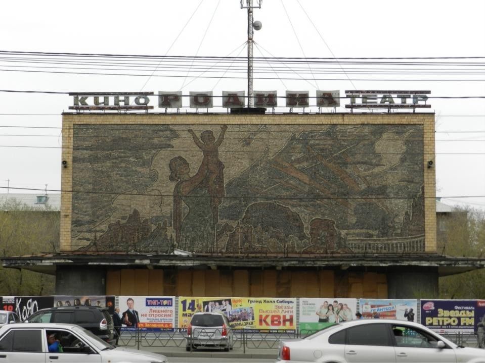 Мозаичное панно «Родина-мать» на фасаде кинотеатра «Родина»