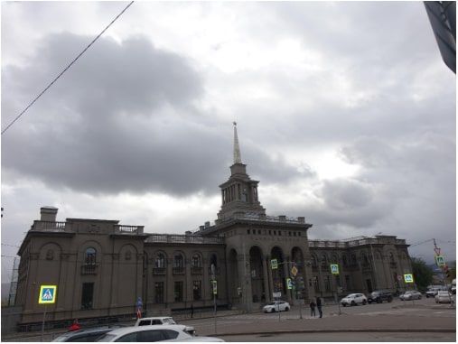 Местоположение, роль и градостроительные характеристики здания. Здание расположено в историческом центре города, выходит северным фасадом на ул. Дубровинского, а южным - на набережную р. Енисей. Важный компонент панорамы набережной в границах исторического центра. С юга замыкает перспективу ул. Парижской Коммуны. Здание занимает доминирующее положение в городской застройке центра, отлично просматривается как с водной поверхности, так и с Коммунального моста, а так же с высот, господствующих над городом.2.Объемно-пространственная композиция здания в целом .Симметричное двухэтажное с цокольным этажом, с антресолями (3-м этажом) в центральном объеме здание.Монументальное здание в формах неоклассицизма.Широкой лестницей по центральной оси здание связано с нижней террасой набережной р. Енисей.Имеет две наружные лестницы по торцам, связывающие верхнюю террасу набережной с нижней.Имеет четко выраженную трехчастную композицию - кубический центральный объем, завершенный башней со шпилем, возвышается над боковыми крыльями, по флангам которых на северном фасаде сильно выступают ризалиты.Аркада, проходящая вдоль южного фасада, образует на обоих этажах крыльев прогулочные галереи, огражденные сквозной колоннадой.Мотив высокой ордерной аркады, уплощенное изображение которой украшает остальные фасады - ведущая архитектурная тема здания.Общие габариты здания в плане - 80,9 х 14,98 м.Ширина восточного торца - 21,95 м, западного - 21,95 м. Основные высотные отметки от уровня пола первого этажа: по свесу кровли венчающего карниза основного объема - 10,275 м, по свесу кровли венчающего карниза центрального объема - 13,8 м; отметка конька - 13,43 м; основание шпиля - 29,0 м; вершина шпиля - 38,4 м. 3.Внутренняя планировкаПланировочная схема - коридорно-анфиладная. Первый этаж центрального объема занят вестибюлем, имеющим связь с набережной через главную (центральную) открытую лестницу и через две внутренние лестницы с проходом через цокольный этаж. В торцах здания - выделенные ризалитами залы ожидания и ресторан, связанные с вестибюлем широкими коридорами и имеющие самостоятельные выходы на галереи, а через них по главной (центральной) лестнице - на набережную.К вестибюлю примыкают большие лестницы, левая из которых сообщается с башней-надстройкой. В ризалитах расположены запасные (служебные) лестницы.Во втором этаже - административные помещения и гостиница.Пространство основных помещений расчленено колоннами, которым соответствуют пилястры на стенах.4.Колористическое решение\".Стены оштукатурены терразитовой штукатуркой, цвет - серый, соответствует колеру № 241 по альбому колеров фирмы «Farrow and Ball» (Англия). Цвет кровли, подоконных сливов, элементов водосточной системы и металлических кровелек деталей фасадов - красно-коричневый (сурик железный).В интерьере стены, потолки, штукатурные тяги окрашены известковыми красками. 5.Южный фасад5.1.Композиция южного фасада на 1952 год.Симметричная композиция фасада в двадцать одну ось (по девять в обоих крыльях и три в центральном объеме).Высотные отметки коньков, карнизов, основания и вершины шпиля, форма кровли. Центральная часть фасада выделена мощным ризалитом, который решен как арочный портик.Три полуциркульные арки портика, поддерживаемые двумя парами восьмигранных в сечении колонн.Угловые пилоны портика.Открыт