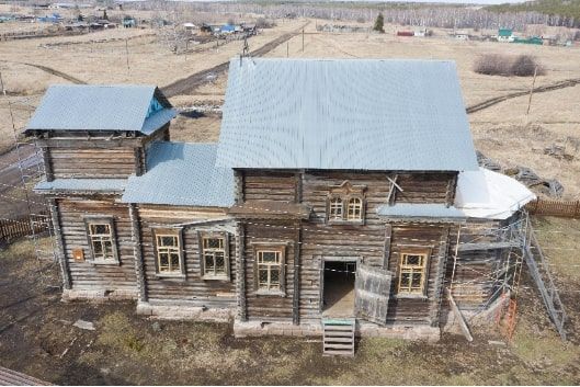 1. Градостроительные характеристики1.1. Местоположение объекта в системе застройки Церковь расположена в центральной части деревни, западным фасадом обращена на ул. Центральная.1.2. Композиционная значимостьЗанимая самую высокую точку рельефа, церковь является градостроительной доминантой в традиционной жилой застройке. 1.3. Габариты и силуэт на дату постройки (нач. XX века)Габариты церкви в плане по оси запад-восток 22,5 м, по оси север-юг 9,5 м. Силуэт – «кораблём».1.4. Секторы и направления видовых раскрытий, визуальные связи памятника Объект преимущественно раскрывается с ул. Центральная, хорошо виден с многих других точек деревни и прилегающей территории.2. Архитектурные и конструктивные характеристики2.1. Объёмно-пространственная композиция на дату строительства (нач. XX века)Церковь имеет характерное для Сибири построение композиции «кораблём», включающее последовательно расположенные по оси запад-восток крыльцо-паперть, колокольню с выделенным помещением лестницы (в северной части), трапезную, храм, пятигранный алтарь. С севера и юга у храмовой части – крыльца входов, образующие в плане форму креста. Объёмно-пространственная композиция церкви задана повышенными объёмами храмовой части и колокольни, имеющими шатровые завершения и объединёнными трапезной, равной по высоте алтарю. Храм завершён восьмигранным барабаном. 2.2. Конструкция крыши и завершения на дату строительства (нач. XX века)Крыша колокольни завершена главкой. Храмовое пятиглавие (с центральной главой и четырьмя главами на двухступенчатых барабанах по углам храма) завершает композицию восьмерика с шатровой крышей. Трапециевидные фронтоны храма имеют двухскатные покрытия со скосом у верхней грани подвышений. Трапезная имеет двускатную крышу. Апсида имеет пятискатную крышу, увенчанную барабаном с луковичной главкой.Покрытие выполнено из металла и окрашено, обрешётка и стропильная система деревянные.2.3. Композиция и архитектурно-художественное оформление фасадов на дату строительства (нач. XX века)2.3.1. Фасады колокольни (без описания завершений)Композиция фасадов колокольниБревенчатое основание колокольни, выполненное в форме прямоугольника, переходит с повышением ярусов в равносторонний четверик, который переходит в восьмерик звона с прямоугольными проёмами по сторонам света. На западном фасаде в первом ярусе колокольни расположена высокая деревянная двустворчатая входная дверь, на втором ярусе – окно в виде креста. На северном и южном фасадах колокольни в первом ярусе находится по одному прямоугольному оконному проёму. Ярусы колокольни по периметру стен визуально отделены карнизами. Декоративное оформление фасадов:простые деревянные наличники, окаймляющие дверь;резной подзор карнизов;простые наличники, окаймляющие окно в виде креста;плоский дощатый подкарнизный фриз.2.3.2. Северный и южный фасадыКомпозиция фасадовОсновной объём храма решён в два яруса, в центре расположено открытое крыльцо-паперть, подводящее к одностворчатой высокой деревянной двери, по левую и правую сторону от двери расположено по одному окну. Над дверью, на втором ярусе храма – сдвоенное окно, по оси которого расположен трапециевидный фронтон. Нижний и верхний ярус визуально разделены карнизом. Восьмигранный барабан над храмом – с ложными окнами, углы барабана подчё