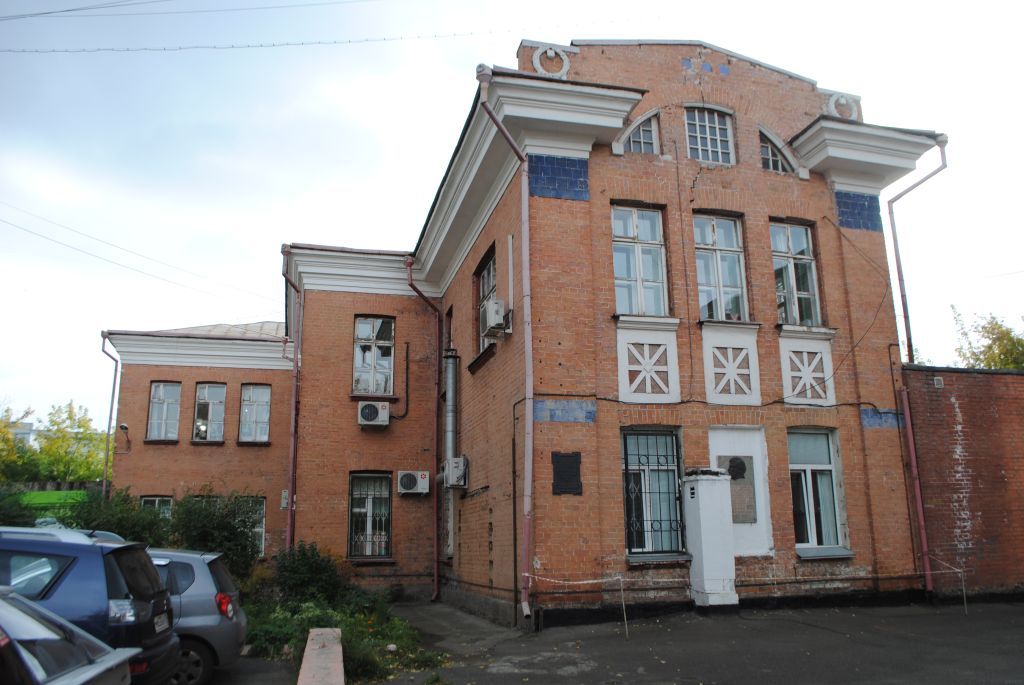 1. Градостроительные характеристики1.1. Местоположение объекта в системе городской застройкиЗдание расположено в квартале, ограниченном ул. Карла Маркса, ул. 9 Января, ул. Дубровинского, и ул. Парижской Коммуны со значительным отступом от линии застройки. 1.2. Композиционная значимостьЭлемент комплекса застройки квартала исторического центра города Красноярска. 1.3. Секторы и направления видовых раскрытий, визуальные связи памятникаНаходится в глубине квартала, но является заметным элементом застройки благодаря обособленности строения и открытой территории вокруг памятника. 2. Архитектурные и конструктивные характеристики2.1. Объемно-пространственная композиция на 1912 г.Двухэтажное здание, состоящее из двух соединенных переходом блоков: прямоугольного в плане южного блока и Т-образного в плане северного блока. Под средней частью южного блока выполнен подвал. Северный блок состоит из основного объема, вытянутого в направлении север – юг и выступающего с севера объема. С северной стороны основного объема выполнена одноэтажная поздняя пристройка (предметом охраны не является), из которой осуществляется вход в здание. Южный блок состоит из трех частей: средней и боковых, выступающих ризалитами с севера и с юга. В ризалите средней части, выступающем с южной стороны, расположен другой вход в здание. 2.2. Конструкция крыши на 1912 г.Крыши объемов здания вальмовые с железной под окраску кровлей по деревянным стропилам и обрешетке. 2.3. Композиция и архитектурно-художественное оформление фасадов на 1912 г.2.3.1. Северный фасад на 1912 г.Композиция северного фасадаСеверный блокФасад выступающего объема решен в 3 оконных оси (на первом этаже по центральной оси – ниша).Фасад выступающего объема завершен широким профилированным карнизом большого выноса с трапециевидным щипцом, прорезанным в уровне карниза тройным окном полуциркульной формы.Углы фасада выступающего объема обработаны широкими плоскими лопатками.Фасад основного объема решен в одну оконную и одну дверную ось (в настоящее время дверная ось перекрыта поздней пристройкой).Фасад основного объема завершен широким профилированным карнизом небольшого выноса.Оконные проемы с лучковыми перемычками опираются на внешние подоконники (утрачены под проемами, расположенными по центральной оси на втором этаже и по второй и третьей осям на первом этаже выступающего объема).Цоколь выделен уступом.Южный блокСредняя часть фасада решена в две оконных оси, ризалиты – в три оконных оси каждый.Фасад завершен широким профилированным карнизом небольшого выноса.Оконные проемы с лучковыми перемычками опираются на внешние подоконники.Оконные проемы средней части по ширине больше других.Цоколь выделен уступом.Декоративное оформление северного фасадаСеверный блок:глазурованные керамические плитки в верхней и средней частях лопаток;три глазурованные керамические плитки в нишках над окном щипца; квадратные филенки с лепным декором геометрического рисунка во внутреннем поле, украшающие подоконное пространство второго этажа выступающего объема;лепные венки, украшающие фланги щипца.2.3.2. Восточный фасад на 1912 г.Композиция восточного фасадаФасад выступающего объема северного блока решен в две оконных оси на втором этаже и в одну оконную ось на первом.Фасад основного объема северного блока р