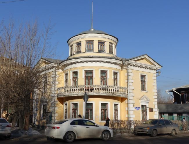 1.Местоположение, роль и градостроительные характеристики здания:занимает угол ул. Горького и ул. Бограда, примыкая к усадьбам поул. Горького, 9, и ул. Бограда, 106, - памятникам архитектуры, и является частью комплекса исторической застройки, формируя и акцентируя данный угол архитектурной композицией - трёхэтажной ротондой со шпилем.2.Объёмно-пространственная композиция зданияЗдание кирпичное, оштукатуренное. Основной его объём имеет два этажа, есть небольшой подвал, третий этаж сформирован помещениями лестничной клетки и ротонды.Здание в плане сложной формы, представляет собой прямоугольник с двумя выступающими ризалитами, выходящими на красные линии застроек улиц, и круглой ротондой между ними. К зданию с западной стороны выполнена полукруглая пристройка на высоту всех этажей, соответствующая расположению двухмаршевой лестницы.На уровне второго этажа ротонды находится большой полукруглый балкон с массивными балясинами и перилами.Здание имеет автономные изолированные входы, организованные с ул. Горького на первый этаж (через помещение квадратного в плане тамбура) и с ул. Бограда на второй этаж (через прямоугольный тамбур).Первый и второй этажи имеют идентичную планировку, сформированную вокруг прямоугольного холла в центре здания, соединённого с лестницей и с тремя большими помещениями, выделенными на фасадах ризалитами и ротондой с балконом 2-го этажа.Третий этаж сформирован помещениями лестничной клетки и ротонды, соединёнными небольшим прямоугольным помещением, которое имеет два выхода в подкровельное пространство.Крыша ротонды в форме купола завершена шпилем. Кровля основного объёма вальмовая, над ризалитами двухскатная. На крыше имеются треугольной формы слухи и вентиляционные оштукатуренные трубы.3.Восточный фасад3.1.Композиция восточного фасада на 1946 г.К выступающему 1-осному ризалиту с юга примыкает объём угловой ротонды, с севера - 1-осный участок фасада с углублённым в него проёмом- входом.Ризалит завершён треугольным фронтоном.Форма, местоположение и размер оконных проёмов.3.2.Декор восточного фасада на 1946 г.Углы ризалита акцентированы чередующимся по ширине рустом.Профилированный венчающий карниз проходит по всему фасаду, под ним расположены крупные сухарики и гладкий широкий фриз.Широкие гладкие лопатки, переходящие в колонны входных групп.Парадное крыльцо здания с бетонными ступенями.Окно 1-го этажа обрамлено профилированным наличником на полочках с подоконными фартуками. Треугольные сандрики с изящным растительным узором в тимпанах на ступенчатых полочках.Окно 2-го этажа обрамлено наличником в форме профилированных заушин.Трёхэтажный объём ротонды с пятью осями оконных проёмов первого и второго этажей и семью осями оконных проёмов третьего этажа (бельведера) без наличников.Крыша ротонды купольной формы завершена шпилем.Балкон с массивными балясинами и перилами опоясывает среднюю часть ротонды, ограниченную ризалитами.Северный угол здания отмечен гладкой лопатой.4.Южный фасад4.1.Композиция южного фасада на 1946 г.К выступающему Косному ризалиту с востока примыкает объём угловой ротонды, с запада — 1-осный участок фасада с углублённым в него проёмом-входом.Ризалит завершён треугольным фронтоном.Форма, местоположение и размер оконных проёмов.4.2.Декор южного фасада на 1946 г.Углы ризалита 