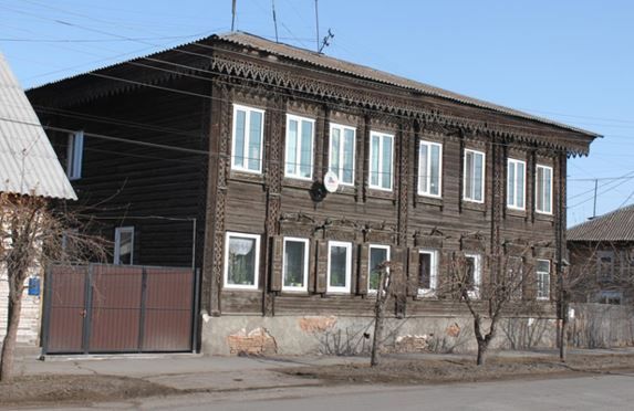1. Градостроительные характеристики 1.1. Местоположение объекта в системе городской застройки Расположен в историческом центре, в южной части квартала, ограниченного ул. Октябрьской, ул. Ачинской, ул. Мира и ул. Затубинской, юго-западным фасадом выходит на линию застройки северной стороны ул. Октябрьской.1.2. Композиционная значимостьВажный элемент комплекса исторической застройки центра города.1.3. Габариты и силуэтГабариты и высотные отметки здания на конец XIX в.1.4. Секторы и направления видовых раскрытий, визуальные связи объектаВидовые раскрытия с участка ул. Октябрьской, ограниченного ул. Затубинской и ул. Ачинской.2. Архитектурные и конструктивные характеристики объекта2.1. Объемно-пространственная композиция на конец XIX в.Двухэтажный дом неправильной формы, с подвалом (цокольным этажом). Основной (теплый) объем дома в плане прямоугольный, с трапециевидным узким пролетом с северо-западной стороны, широкая часть этого пролета имеет выступ со стороны северо-восточного фасада. Со стороны северо-восточного фасада (на ширину выступа основного объема) и со стороны юго-восточного фасада основной объем обстроен сенями с галереями во втором этаже. Со стороны юго-восточного фасада, под галереей выполнена терраса. Дополнительную пластику объему придают выступающие навесы над крыльцами входов со стороны сеней и узкий ризалит в средней части объема сеней и галереи северо-восточного фасада.2.2. Конструкция крыши на конец XIX в.Крыша вальмовая, с металлической кровлей по деревянным стропилам и обрешетке.2.3. Композиция и архитектурно-художественное оформление фасадов на конец XIX в. 2.3.1. Юго-западный фасадКомпозиция фасадаФасад решен в восемь оконных осей, лопатками, расположенными по углам и перерубам, разделен на четыре прясла (первое прясло решено в одну ось, второе – в три оси, третье и четвертое – в две оси каждое), завершен профилированным карнизом большого выноса. В юго-восточном направлении фасад продолжен пристройкой сеней с открытой галереей во втором этаже и террасой – в первом.Декоративное оформление фасада:накладная пропильная резьба геометрического рисунка филенчатых лопаток;наличники окон второго этажа (боковины украшены накладными полубалясинами; высокая лобань и фартук украшены накладной пропильной резьбой; лобань завершает фигурно опиленная корона, украшенная в центре и по бокам круглыми балясинами, такие же балясины размещены под боковинами наличников);наличники окон первого этажа с трехчастными филенчатыми ставнями (высокая лобань и фартук украшены накладной пропильной резьбой; лобань завершает фигурно опиленная корона, украшенная в центре и по бокам круглыми балясинами);подзор пропильной резьбы, проходящий по полочке венчающего карниза, такие же подзоры украшают венчающий и межэтажный карнизы пристройки сеней с галереей и террасой.2.3.2. Юго-восточный фасадКомпозиция фасадаФасад основного объема со стороны южного угла решен в три оси оконных проемов (угол и переруб между второй и третьей осями оформлены лопатками), со стороны восточного угла к нему выполнен прируб сеней с открытой галереей во втором этаже (западная половина фасада галереи глухая) и расположенной под ней террасой. В южной (слегка выступающей) половине прируба сеней расположены главный вход и вход в цокольный этаж под одним односкатным н