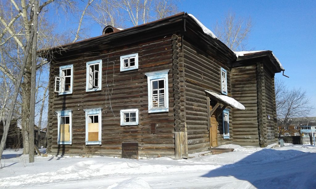 1. Местоположение, роль и градостроительные характеристики зданияЗдание входит в комплекс построек больницы, расположенный на южной окраине города, территория которого тянется вдоль ул. Декабристов. Местоположение – средняя часть северной стороны участка больничного комплекса, главным (северным) фасадом обращено на ул. Декабристов.2. Объемно-пространственная композиция здания на конец XIX в.:Крупная двухэтажная бревенчатая постройка под вальмовой крышей, Т-образная в плане: северный объем (близкий к квадрату) и южный (прямоугольный, вытянутый в широтном направлении). Главный вход на северном фасаде, со стороны улицы Декабристов, второй вход – с востока. Стены выполнены из бревен диаметром 28-30 см.3. Внутренняя планировка на конец XIX в.Пространственно-планировочная структура в габаритах капитальных стен. Планировка образована продольными и поперечными капитальными стенами. Главный вход на северном фасаде ведет на лестничную клетку в западной части здания, восточный вход – на лестничную клетку, расположенную в юго-восточном углу здания.4. Колористическое решение на конец XIX – начало ХХ вв.Стены бревенчатые, не окрашены, без выделения деталей. Наличники окрашены масляными красками в светлые тона. Кровля и водостоки окрашены в красно-коричневый цвет (сурик железный). В интерьерах двери и окна окрашены в белый цвет, полы и лестницы – в оттенок охры.5. Условия зрительного восприятияЗдание визуально воспринимается с ул. Декабристов.6. Южный фасад на конец XIX в.6.1. Композиция южного фасадаЮжный фасад трехчастный: две боковые глухие части северного объема и фасад южного объема, решенный в 4 оси оконных проемов. Между осями 1 и 2, осями 3 и 4 расположены перерубы. По оси 4 – окно промежуточной площадки лестничной клетки. Окна по оси 3 имеют меньшие размеры, чем остальные окна фасада.Под свесом кровли проходит подшивной карниз большого выноса с дощатым фризом.Углы бревенчатых стен рублены «в обло» с остатком, перерубы «в лапу».6.2. Декор южного фасадаНаличники окон 1-го этажа с прямыми профилированными сандриками и снятыми фасками на вертикальных элементах обвязки, накрыты покрывной доской. Низ наличника прямой, гладкий, без свесов, «отбит» калеванной рейкой.Окна 2-го этажа обрамлены широкой доской с угловым соединением «в ус» и снятыми фасками и накрыты покрывной доской.Наличник окна лестничной клетки аналогичен наличникам 1-го этажа.Наличник окон 3-ей оси (меньшего размера) аналогичен наличникам верхнего этажа.7. Западный фасад на конец XIX в.7.1. Композиция западного фасадаАсимметричная двухчастная композиция фасада в три оси окон – первая ось расположена на выступающем северном объеме здания и представлена одним окном промежуточной площадки лестничной клетки, две других оси – на южном объеме здания в уровне 1-го и 2-го этажей. Севернее первой и южнее третьей осей – перерубы.Под свесом кровли проходит подшивной карниз большого выноса с дощатым фризом.Углы бревенчатых стен рублены «в обло» с остатком, перерубы «в лапу».7.2. Декор западного фасадаНаличники окон 1-го этажа с прямыми профилированными сандриками и снятыми фасками на вертикальных элементах обвязки, накрыты покрывной доской. Низ наличника прямой, гладкий, без свесов, «отбит» калеваной рейкой.Окна 2-го этажа обрамлены широкой доской с угловым соединением «в ус» и снятыми фасками