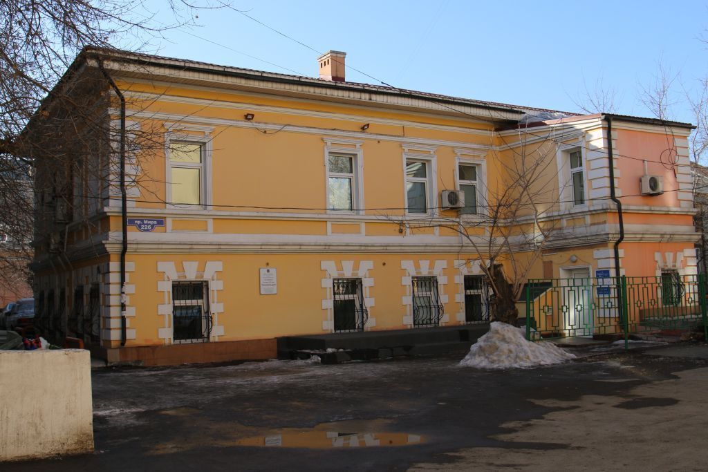 1.Местоположение, роль и градостроительные характеристики зданияЗдание расположено в центральной части города Красноярска, участвует в формировании историко-архитектурной среды главной улицы (пр. Мира) центра города. 2.Объемно-пространственная композиция зданияДвухэтажное, с подвалом, Т-образное в плане, вытянутое в меридиональном направлении, под четырехскатной крышей над основным объемом здание. Основной объем прямоугольный в плане. У северных углов восточного и западного фасадов выполнены двухэтажные пристройки под односкатными крышами. 3.Внутренняя планировкаПланировка первого этажа основного объема образована одной продольной и двумя поперечными капитальными стенами, продольная стена делит южную часть здания на восточную и западную половины, в каждой из этих половин две поперечных капитальных стены образуют отдельные помещения. В северной части здания находится протяженное с запада на восток помещение, в юго-восточном углу которого расположен вход в одну из лестничных клеток, ведущих в подвал. На втором этаже одна продольная и две поперечных капитальных стены образуют три различных по площади помещения в северной части здания. Планировка подвала образована двумя пересекающимися капитальными стенами, образующими в западной части два одинаковых по площади помещения, а в восточной части – две небольшие комнаты (северная из которых с лестницей). В западной пристройке (в южной стене) расположен вход в объект и главная междуэтажная лестница. В восточной пристройке расположены вход в объект (в южной стене), вход во вторую лестничную клетку, расположенную вдоль восточной стены подвала, и помещение (на втором этаже). 4.Условия зрительного восприятияКамерное восприятие с юго-восточной, западной и северо-западной сторон внутри застройки квартала в границах пр. Мира, ул. 9 Января, ул. Ленина и ул. Каратанова.5.Колористическое решение фасадовЖелтый или оранжевый цвет стен, белый цвет декоративных деталей, серый цвет цоколя, красно-коричневый цвет кровли.6.Южный фасад6.1. Композиция фасада на 1810-е гг.Фасад решен в пять осей оконных проемов основного объема на каждом этаже, завершен карнизом значительного выноса. Южные стены пристроек имеют по одному входу на первом этаже, на втором этаже восточной пристройки имеется один оконный проем. Все проемы имеют прямоугольную форму.6.2. Декоративное оформление фасада на 1810-е гг.:профилированные рамочные наличники «ушастого» типа окон второго этажа;профилированные прямоугольные сандрики над окнами второго этажа;рустовка углов здания на первом и втором этажах в виде чередующихся разновеликих по горизонтальному размеру прямоугольных выступов;обрамления окон первого этажа в виде вертикальных рядов из трех выступов-квадров по сторонам проема и верхней части в виде двух Г-образных элементов с помещенным между ними клинчатым замковым камнем (все выступающие части оконных обрамлений объединены между собой профилированной штукатурной тягой, обводящей проемы окна); междуэтажный широкий профилированный карниз;горизонтальная тяга, проходящая по низу окон второго этажа;прямоугольные горизонтально уложенные филенки под окнами второго этажа;горизонтальная тяга простого профиля, проходящая над окнами второго этажа (выше уровня сандриков);простой профиль венчающего карниза.7.Запад