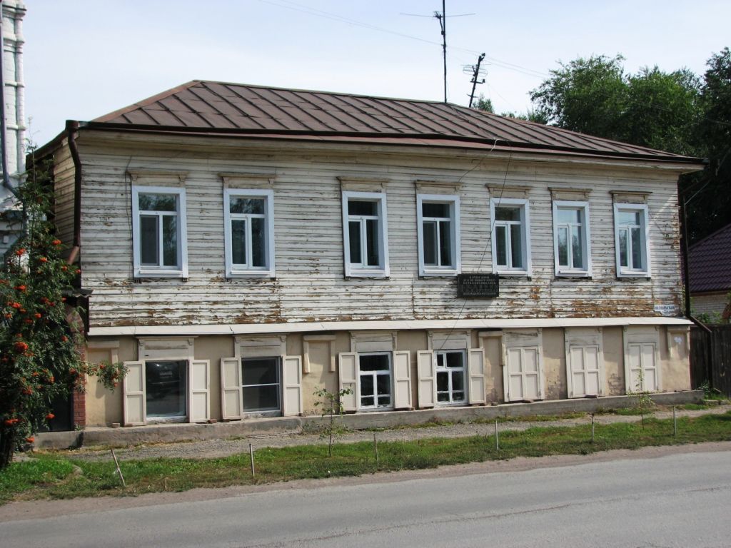 1. Градостроительные характеристики 1.1. Местоположение объекта в системе городской застройки Объект расположен в историческом центре, в южной части квартала, ограниченного ул. Октябрьской, ул. Кравченко, ул. Мира и ул. Штабной, юго-западным фасадом выходит на линию застройки ул. Октябрьской.1.2. Композиционная значимостьВажный элемент комплекса исторической застройки центра города.1.3. Габариты и силуэтГабариты и высотные отметки здания на рубеж XIX–XX веков.1.4. Секторы и направления видовых раскрытий, визуальные связи объектаРаскрытие объекта с улицы Октябрьской, на участке от перекрестка ул. Октябрьской с ул. Штабной до объекта, расположенного по ул. Октябрьская, 65.2. Архитектурные и конструктивные характеристики 2.1. Объемно-пространственная композиция на рубеж XIX–XX веков Двухэтажный дом-пятистенок, прямоугольный в плане, с большой открытой галереей в уровне второго этажа, расположенной с северо-восточной стороны. 2.2. Конструкция крыши на рубеж XIX–XX вековКрыша основного объема вальмовая, с металлической кровлей по деревянным стропилам и обрешетке, имеет металлические водосливы по всему периметру. Над верандой крыша односкатная.2.3. Композиция и архитектурно-художественное оформление фасадов на рубеж XIX–XX веков2.3.1. Юго-западный фасадКомпозиция фасадаФасад решен в семь осей оконных проемов (оси, в соответствии с планировкой помещений, сгруппированы по два (первые четыре оси) и три окна), завершен дощатыми карнизом большого выноса и фризом.Декоративное оформление фасада:филенчатые пилястры по углам и простенкам (между второй и третьей, четвертой и пятой осями) первого этажа;простые строгие наличники (высокие лобани завершены карнизами, поддерживаемыми небольшими кронштейнами; фартук фигурно обрезан и фланкирован «кистеообразными» опусками боковин) и филенчатые деревянные ставни оконных проемов.2.3.2. Юго-восточный фасадКомпозиция фасадаФасад решен в три оси оконных проемов основного объема (две первые оси сгруппированы у западного угла, третья ось расположена у восточного угла) и продлен у восточного угла осью пристройки с крыльцом входа, завершен дощатыми карнизом большого выноса и фризом. Над входом выполнен двухскатный навес с фронтоном.Декоративное оформление фасада:филенчатые пилястры по углам первого этажа;простые строгие наличники (высокие лобани завершены карнизами, поддерживаемыми небольшими кронштейнами; фартук фигурно обрезан и фланкирован «кистеообразными» опусками боковин) и филенчатые деревянные ставни оконных проемов.небольшая филенчатая лопатка в левом углу полуфронтона; «солярный» элемент, набранный из расположенных полукругом пропильных элементов вытянутой ромбовидной формы (с накладным фигурным элементом в центре) в поле полуфронтона;зубчатый подзор карниза веранды.2.3.3. Северо-восточный фасадКомпозиция фасадаФасад представлен открытой галереей в уровне второго этажа, за которой расположены 6 проемов основного объема. Объем лестничной клетки (подъем на галерею) расположен в восточном углу фасада. Вход на первый этаж основного объема расположен в западном углу объема лестничной клетки, над входом выполнен навес. 2.4. Виды отделки фасадной поверхности на рубеж XIX–XX веков Первый (кирпичный) этаж оштукатурен, второй (деревянный) – обшит горизонтально тесом «под руст». 2.5. Колористическое реш