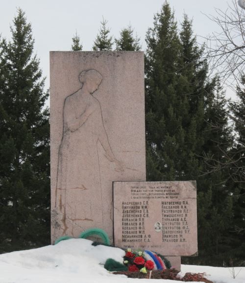 1. Местонахождение памятника:возвышенность в центре села Лапшиха Ачинского района Красноярского края.2. Захоронение (могила) в полном объемеЗахоронение тел (останков) людей. Могильный холм отсутствует.3. Надгробное сооружение3.1. Тип памятникаНамогильное сооружение представляет собой стелу из трех врезанных друг в друга прямоугольных параллелепипедов. Нижний параллелепипед является основанием для двух верхних. Памятник располагается на двухступенчатом пьедестале.Размеры: размер первой ступени пьедестала 2,47 х 2,42 м, размер второй ступени пьедестала 2,03 х 2,12 м, размер основания памятника 1,61 х 0,45 м, высота первой ступени пьедестала 0,15 м, высота второй ступени пьедестала 0,14 м, высота нижнего параллелепипеда 0,45 м, высота среднего параллелепипеда 0,9 м, высота самого высокого параллелепипеда 2,4 м, общая высота памятника 3,14 м. 3.2. Техника и материалы памятника:все детали надгробного памятника выполнены из розового гранита.3.3. Особенности обработки поверхности: все грани стелы и верхней ступени постамента имеют отшлифованную поверхность. 3.4. Надписи с оригинальными названиями композиций и тексты, введенные в состав памятникаНа среднем параллелепипеде высечена надпись: «Герои спят… Года их множат. Они для нас как знамя впереди Герои спят… Остановись прохожий с благоговеньем память их почти: Андреенко С.П. Винников И.М. Дубененко Е.В. Дубененко С.В. Ковалев П.В. Ковалев А.В. Ковалев Ф.П. Ковалев М.Н. Мельников А.Ф. Мельников Е.А. Матвеенко П.А. Плеханов И.И. Разуванов П.Е. Тимошенко Н. Турлаков А.С. Шкуратов Н.Д. Шкуратов Ф.А. Шапоренко Я.Е. Храмцов М. Храмцов А.Н. Погибли в борьбе с колчаковщиной в марте 1919 г.». У надписи: «Шкуратов Ф.А.» рядом прикреплена овальная фотография с надписью: «Шкуратов Федос Андреевич 1886–1919».3.5. Дополнительные элементы оформления и малые архитектурные формы:на самом высоком параллелепипеде высечен барельеф в виде фигуры женщины с цветами в руке и рукой у сердца.3.6. Элементы благоустройстваС лицевой (северной) стороны подходят ступени и пандусы с обеих сторон от них.4. Историческое (мемориальное) значение:памятник истории, связанный с событиями Гражданской войны на территории Красноярского края.5. Художественная ценность:надмогильное сооружение, выполненное в нетрадиционных формах воинского захоронения, в виде стелы из трех врезанных друг в друга прямоугольных параллелепипедов.