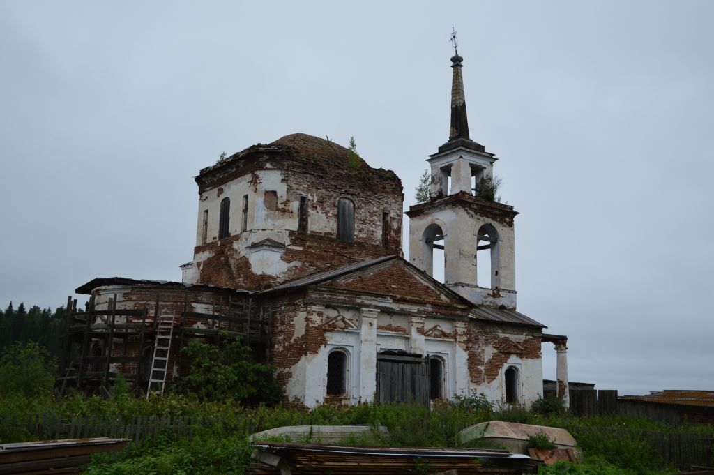 1. Местоположение объекта в системе застройкиОбъект расположен в 30 км от г. Енисейска на правом берегу р. Енисей, в центре д. Каменск. 2. Объемно-пространственная композиция здания на 1829 г. Одноэтажная, крестообразная в плане, церковь с трехчастной планировочной структурой – двухсветный четверик храма с полукруглой апсидой, трапезная и трехъярусная колокольня, ярусы которой – четверики разного объема. В нижнем ярусе колокольни размещено помещение притвора, фланкированное с севера и юга помещениями сторожевской и лестничной клетки. С западной стороны колокольни возведен четырехколонный портик с треугольным фронтоном (фронтон и одна из колонн утрачены). С северной и южной сторон храма размещаются симметричные приделы. Габариты церкви 25,2х19,6 м.3. Внутренняя планировкаВ направлении запад-восток поочередно расположены паперть, притвор, трапезная, главный храм с алтарной апсидой. Пространства главного и придельных храмов объединены арочными проемами. С северной стороны к притвору примыкает помещение лестничного блока для входа на ярус звона, с южной стороны – сторожевская.4. Условия зрительного восприятияОбъект раскрывается со стороны р. Енисей и со стороны подъезда к объекту по ул. Большая. 5. Колористическое решениеСтены фасадов оштукатурены и побелены. Все крыши здания покрыты железом и окрашены. Кресты на храме, его апсиде и шпиле колокольни позолочены (кресты на храме и апсиде утрачены). В интерьере стены и потолки оштукатурены и побелены.6. Западный фасад6.1. Композиция западного фасада на 1829 г. В нижнем ярусе колокольни расположен дверной проем с коробовым завершением, грани среднего яруса прорезаны проемами с коробовыми завершениями, верхнего – прямоугольными проемами (по одному на каждой грани). Грани верхних ярусов колокольни завершены широкими карнизами. Перед входом – колонны портика тосканского ордера. 6.2. Декор западного фасада на 1829 г.:карнизы простого профиля;гладкие фризы;архивольты проемов среднего яруса колокольни;портал дверного проема;выразительные капители колонн круглого сечения.7. Северный и южный фасады7.1. Композиция северного и южного фасадов на 1829 г. Лестничная клетка (сторожевская) и трапезная решены в одну оконную ось, каждая грань верхнего яруса храма прорезана тремя оконными проемами, придел решен в три оси, по центральной оси расположен дверной проем, по бокам – оконные. Все проемы (за исключением узких прямоугольных боковых окон граней верхнего яруса храма) имеют коробовые завершения. Углы верхнего яруса храма срезаны. Фасад придела завершен треугольным фронтоном, опирающимся на ряд полуколонн. Ярусы храма завершены карнизами.7.2. Декор северного и южного фасадов на 1829 г.:карнизы простого профиля;гладкие фризы;прямоугольные рамочные наличники окон лестничной клетки (сторожевской), трапезной и придела;треугольные сандрики над наличниками;портал дверного проема;капители четырех полуколонн прямоугольного сечения.8. Восточный фасад8.1. Композиция восточного фасада на 1829 г.Апсида решена в четыре оси окон с коробовыми завершениями. Фасады приделов глухие.8.2. Декор восточного фасада на 1829 г.:карниз простого профиля;гладкий фриз;прямоугольные рамочные наличники окон;треугольный сандрик над центральным окном.9. ФундаментЛенточный бутовый на известково-песчаном растворе. 10. Стены и перегородки