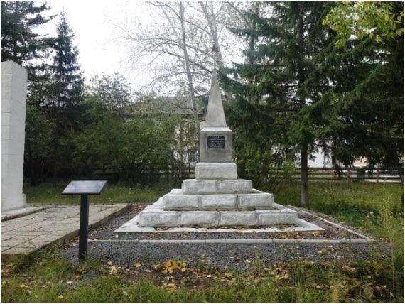 1. Местонахождение объекта Объект расположен на центральной площади села Партизанского (Партизанский район), ул. Гагарина, 26. 2. Захоронение (могила) в полном объеме Захоронение тела (останков) человека. 3. Надмогильное сооружение 3.1. Тип памятника 3.1.1 Обелиск Классическая форма воинского надмогильного сооружения: верхняя часть обелиска — пирамида, нижняя — куб со скошенными верхними гранями, в основании обелиска — пятиступенчатый постамент. Размеры: высота обелиска 25 М, размер основания обелиска 0,7 х 0,7 м, высота 1-й ступени постамента 0,25 м, размер основания 1-й ступени постамента 3,6 х 3,6 м, высота 2-й ступени постамента 0,3 м, размер основания 2-й ступени постамента 2,86 х 2,86 м, высота 3-й ступени постамента 0,3 м, размер основания 3-й ступени постамента 2,12 х 2,12 м, высота 4-й ступени постамента 0,3 м, размер основания 4-й ступени постамента 1,38 х 1,38 м, высота 5-й ступени постамента 0,4 м, размер основания 5-й ступени постамента 0,82 х 0,82 м. 3.1.2 Скульптурная композиция Памятник в виде гипсовой скульптуры партизана с приспущенным знаменем в руках, стоящего в полный рост у бетонной стены. В северной лицевой части стены — ниша размером 0,6 мх 1,4 м. Скульптура установлена на двухступенчатом бетонном постаменте, в основании — бетонная плита. Высота скульптуры 2,6 м, высота постамента 0,47 м, высота стены 3,35 м, размер основания 1,95 мх 1,65 м.3.2. Техника и материалы памятника Материал постамента обелиска — гранит. Материал скульптурной композиции -— гипс и бетон. 3.3. Особенности обработки поверхности Обелиск окрашен. Скульптура и постамент оштукатурены и окрашены. Бетонная стена оштукатурена, рустована и окрашена. 3.4. Надписи с оригинальными названиями композиций и тексты, введенные в состав памятника В нижней части обелиска с восточной и западной сторон -— металлические мемориальные доски с текстом: «Здесь похоронен партизан Потылицын Д.М. с группой товарищей погибших в боях с колчаковщиной». 3.5. Дополнительные элементы оформления и малые архитектурные формы Обелиск завершен объемной металлической пятиконечной красной звездой. 4. Историческое (мемориальное) значение Памятник истории, связанный с установлением Советской власти в годы Гражданской войны на территории Красноярского края.