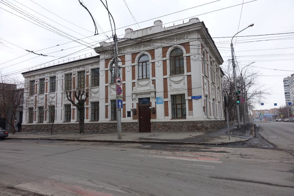 1. Местоположение, роль и градостроительные характеристики зданияЗдание расположено в западной части исторического центра города, формирует и архитектурно акцентирует северо-западный угол перекрестка улиц Ленина и Робеспьера, является частью комплекса исторической застройки квартала, ограниченного улицами – Ленина, Робеспьера, Копылова, Профсоюзов. Частью западного фасада примыкает к соседнему зданию.2. Объемно-пространственная композиция на нач. XX в.Двухэтажное каменное здание, Г-образное в плане, с выступом лестничной пристройки у его северо-восточного угла, с пологой вальмовой крышей. Главный вход организован через дверь, расположенную в центре трехосного ризалита южного фасада.Здание с коридорной системой планировки, образованной двумя коридорами – главным (рекреация), расположенным вдоль южного корпуса, и второстепенным, расположенным вдоль западного корпуса и ведущим к запасной «темной» лестнице. В угловом объеме размещена вестибюльная группа помещений с парадной лестницей, ведущей к большому зальному помещению, которое выделяется на фасадах высокими арочными окнами, расположенными в ризалитах.Кирпичное поле стен выполнено лицевой кладкой. Наличники окон и архитектурные детали южного и восточного фасадов оштукатурены и окрашены в белый цвет. Оконные переплеты внешних рам окрашены в красно-коричневый цвет (сурик железный). Цоколь южного и восточного фасадов оштукатурен и окрашен в белый цвет. Кровля и металлические кровельки деталей фасадов окрашены в красно-коричневый цвет (сурик железный).3. Южный фасад3.1. Композиция южного фасада на нач. XX в.Решен в 9 осей.Трехосный ризалит с главным входом в восточной части фасада.Форма, местоположение и размер оконных проемов.3.2. Декор южного фасада на нач. XX в.Ризалит с парадным входом подчеркнут фигурным аттиком с тумбами коробового завершения с круглой накладкой под простым карнизиком.Средняя часть аттика украшена двумя накладками в виде четырехлепесткового цветка.Прямоугольные окна первого и арочные окна второго этажей ризалита объединены вертикальными частями накладок наличников. Арочная часть наличника рустована и в центре завершена замковым камнем с накладным элементом в виде кольца.В декоративной накладке между окнами расположена гирлянда, обрамляющая верхнюю часть спускающегося из-под нее ступенчатого сандрика.Широкие прямоугольные пилястры акцентируют углы здания и межоконные пространства угловой его части. Верхняя часть пилястр украшена прямоугольной накладкой ступенчатого завершения. С уровня карниза накладку прорезают три вертикальные бороздки, спускающиеся вниз, под которыми расположено небольшое циркульное углубление.Боковины оконных обрамлений и накладки пилястр перехвачены поясами горизонтальных членений фасадов, проходящими под окнами и на уровне их импостов.Широкий фриз со стилизованным растительным орнаментом, элементы которого расположены симметрично относительно оси окон.Главный вход отмечен сандриком, поддерживаемым двумя вогнутыми консолями, расчлененными на лицевой поверхности тремя бороздками. По оси консолей над сандриком расположены две тумбы-накладки полуциркульного завершения.4. Восточный фасад4.1. Композиция восточного фасада на нач. XX в.Решен в 5 осей.Трехосный ризалит в южной части фасада.Форма, местоположе