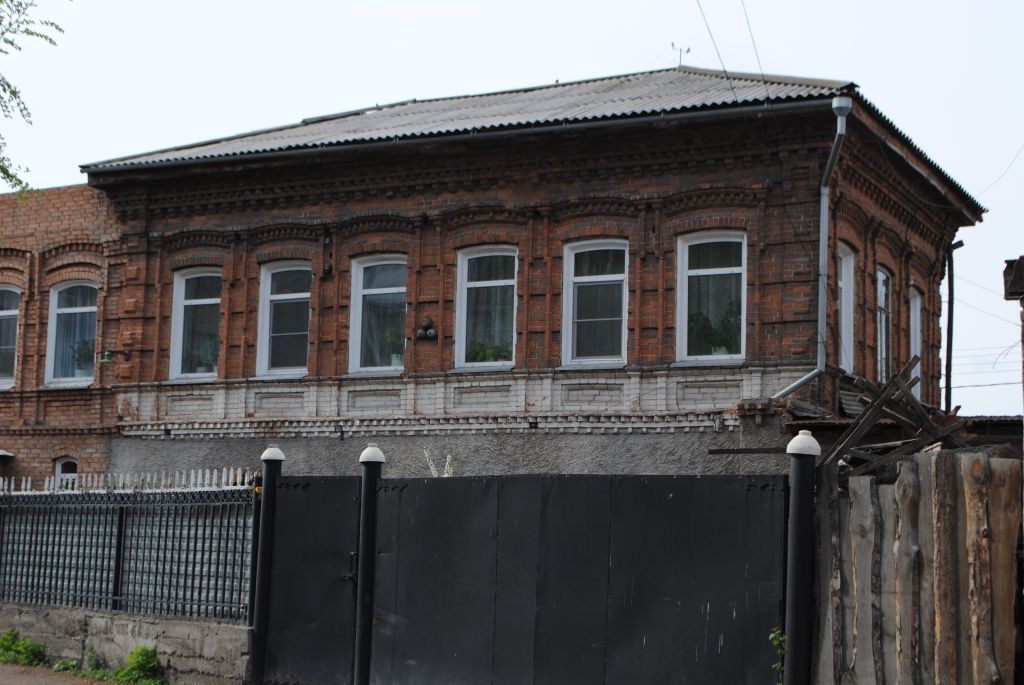1. Градостроительные характеристики1.1. Местоположение объекта в системе городской застройки:расположен в историческом центре, по улице Ачинская (бывшая улица Спорышевская) со значительным отступом от красной линии застройки вглубь квартала. 1.2. Композиционная значимость:элемент комплекса исторической застройки центра города.1.3. Габариты и силуэт: габариты и высотные отметки здания до конька кровли на последнюю четверть XIX в.1.4. Секторы и направления видовых раскрытий, визуальные связи памятника: видовые восприятия первого этажа объекта закрыты окружающей застройкой, второй этаж здания раскрывается с улиц Ачинская, Октябрьская, Ленина.2. Архитектурные и конструктивные характеристики2.1. Объемно-пространственная композиция на последнюю четверть XIX в.: двухэтажное здание.2.2. Конструкция крыши на последнюю четверть XIX в.: крыша вальмовая с металлической кровлей по деревянным стропилам и обрешетке. 2.3. Композиция и архитектурно-художественное оформление фасадов на последнюю четверть XIX в.2.3.1. Северо-западный фасадКомпозиция северо-западного фасадаФасад решен в три оси, завершен фризом и карнизом среднего выноса, над которым расположен аттик (в настоящее время утрачен).Форма, местоположение и размер проемов.Декор северо-западного фасада:широкий фриз под венчающим карнизом украшен поясами сухариков, поребрика и ступенчатых кронштейнов;подоконный пояс, проходящий по низу окон второго этажа;междуэтажный карниз, дополненный рядом сухариков и поребриком, над которым – подоконные ниши в виде горизонтально расположенных филенок, находящиеся под окнами второго этажа, разделенные стойками-лопатками и образующие фризовый пояс;наличники окон второго этажа, представляющие собой узкую рамку «ушастого» контура, над ними – профилированные сандрики, украшенные сухариками, повторяющие лучковую форму завершений оконных проемов;простенки и лопатки, фланкирующие фасад, рустованы.2.3.2. Северо-восточный фасадКомпозиция северо-восточного фасадаФасад решен в шесть осей. Проемы по первому этажу расположены независимо от композиции второго этажа. Фасад продлен поздней трехосной пристройкой в юго-восточном направлении. Завершен фризом и карнизом среднего выноса, над которым расположен аттик (в настоящее время утрачен).Форма, местоположение и размер проемов.Исторический облик пристроенной части.Декор северо-восточного фасада:широкий фриз под венчающим карнизом украшен поясами сухариков, поребрика и ступенчатых кронштейнов;подоконный пояс, проходящий по низу окон второго этажа;междуэтажный карниз, дополненный рядом сухариков и поребриком, над которым – подоконные ниши в виде горизонтально расположенных филенок, находящиеся под окнами второго этажа, разделенные стойками-лопатками и образующие фризовый пояс;наличники окон второго этажа, представляющие собой узкую рамку «ушастого» контура, над ними – профилированные сандрики, украшенные сухариками, повторяющие лучковую форму завершений оконных проемов;простенки и лопатки, фланкирующие фасад, рустованы.2.3.3. Юго-западный фасадКомпозиция юго-западного фасадаФасад завершен фризом и карнизом среднего выноса, над которым, возможно, был расположен аттик (уточняется в процессе исследовательских работ при разработке проекта реставрации).Первоначальное расположение, форма и размер ок