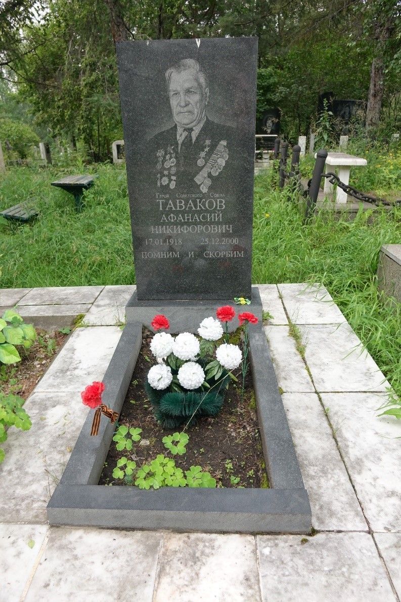 1. Местонахождение объектаОбъект расположен на кладбище Бадалык на Аллее Славы в секторе № 5, в 457 м северо-западнее главного входа.2. Захоронение (могила) в полном объемеЗахоронение тела (останков) человека. 3. Историческое (мемориальное) значениеПамятник истории, связанный с участием жителей Красноярского края в Великой Отечественной войне, вкладом региона в Победу страны над фашизмом, с именем Героя Советского Союза Тавакова Афанасия Никифоровича.