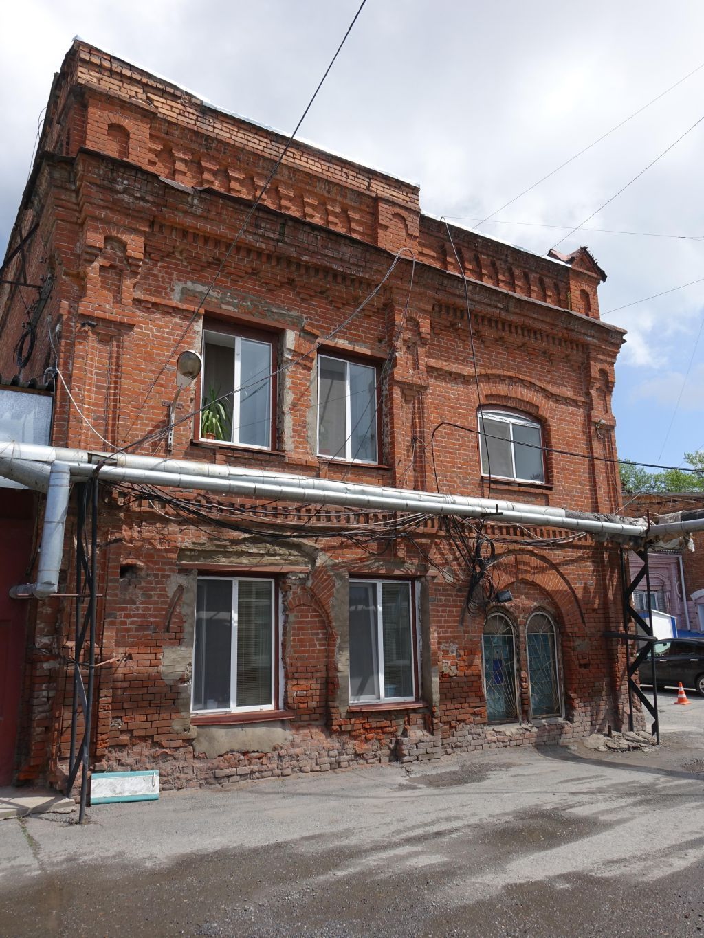 Предмет охраны объекта культурного наследия регионального значения «Конторско-складской корпус», расположенного по адресу: Красноярский край, г. Ачинск, ул. Ленина, 24Б, входящего в состав объекта культурного наследия регионального значения «Усадьба Максимова», кон. XIX – нач. XX вв., составляют следующие особенности, подлежащие обязательному сохранению:1. Градостроительные характеристики1.1. Местоположение в системе городской застройкиЗдание расположено на территории усадьбы (в ее северной части), в квартале, ограниченном ул. Ленина, ул. Дзержинского, ул. Пузановой и Театральным сквером. 1.2. Композиционная значимостьЗдание участвует в формировании северо-западной границы усадьбы.1.3. Габариты и силуэтГабариты в плане (10 х 21 м), высотные отметки здания.1.4. Секторы и направления видовых раскрытий, визуальные связи объектаПреимущественные видовые раскрытия здания с территории усадьбы. 2. Архитектурные и конструктивные характеристики2.1. Объемно-пространственная композиция на начало ХХ векаДвухэтажное, прямоугольное в плане, под односкатной крышей здание. 2.2. Планировочная структура Планировочная структура здания в габаритах капитальных несущих конструкций наружных стен на начало ХХ века (нерасчлененное стенами единое внутреннее пространство). Три мощных столба квадратного сечения поставлены в ряд вдоль продольной оси здания. Планировка обоих этажей одинакова. Лестница на второй этаж расположена вдоль юго-восточной стены.2.3. Композиция и архитектурно-художественное оформление фасадов на начало ХХ века2.3.1. Юго-западный фасадКомпозиция фасада Фасад симметричный, угловыми и центральной лопаткой на фасаде выделены два прясла, в каждом из которых расположено по одному проему на каждом этаже. Проемы первого этажа – сдвоенные флорентийские окна с полуциркульными арками (объединяющая арка каждого окна выделена углублением по внешнему контуру).Проемы второго этажа – окна с лучковыми перемычками.Фасад завершен широким профилированным карнизом, над которым расположен глухой парапет с профилированным карнизом, разделенный на два прясла квадратными тумбами по осям лопаток, увенчанными крестовыми кровлями с треугольными фронтонами. Декоративное оформление фасада:сухариковый пояс и городчатый фриз, проходящие под венчающим карнизом;междуэтажный пояс, выполненный в виде двух плоских тяг с поребриком между ними, раскрепованный по осям лопаток;вертикальные филенки, расположенные вдоль лопаток в уровне первого и второго этажей (в уровне второго этажа вертикальные филенки лопаток завершены ступенчатым зубцом, сами лопатки – пояском, фигурной филенкой и машикулей);пояс с рядом зубцов понизу, проходящий над окнами второго этажа и огибающий перемычки по их верхнему контуру (перемычки имеют выступ в верхней части);лежачая филенка под каждым окном второго этажа;оформление парапета в виде ряда из мелких полуколонн с перехватами, фигурной накладки в верхней части средней тумбы, фигурной впадины с лучковым завершением на угловых тумбах и карниза фронтонов тумб.2.3.2. Юго-восточный фасадКомпозиция фасадаФасад симметричный, решен в 5 осей проемов (проемы, соответствующие четвертой и пятой осям, застроены более поздним зданием завозни и заложены), углы фасада оформлены лопатками. В уровне первого этажа второй оси соответствует дверно